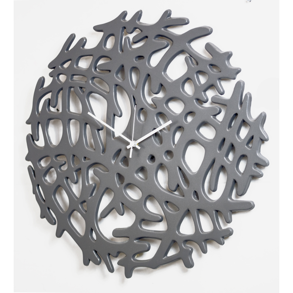 Reloj con estructura perforada en cerámica compuesta. Acabado lacado gris cuarzo y agujas cromadas.