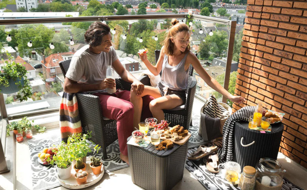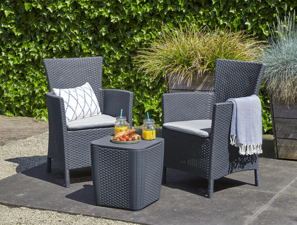 El conjunto de balcón Iowa de Keter es la solución ideal para realzar balcones, terrazas o pequeños espacios exteriores con un toque de elegancia y funcionalidad.