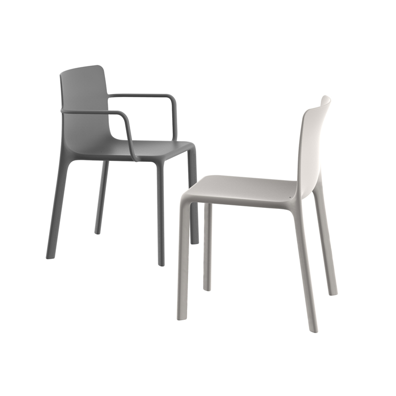Fabricado en polipropileno reforzado con fibra de vidrio inyectada con gas. Apilable. Disponible en varios colores. Apto para uso en interiores y exteriores.