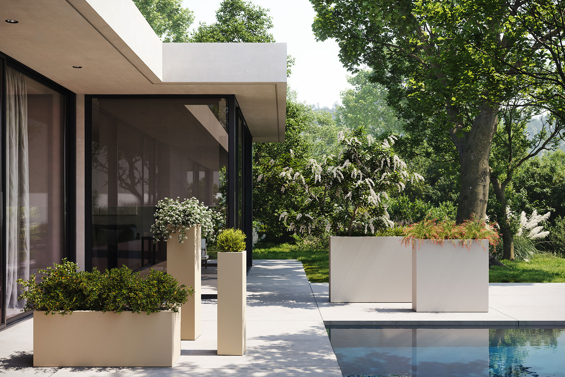 Jarrón fabricado en resina de polietileno moldeada por rotación. 100 % reciclable. Apto para interior y exterior. Disponible en varios acabados.