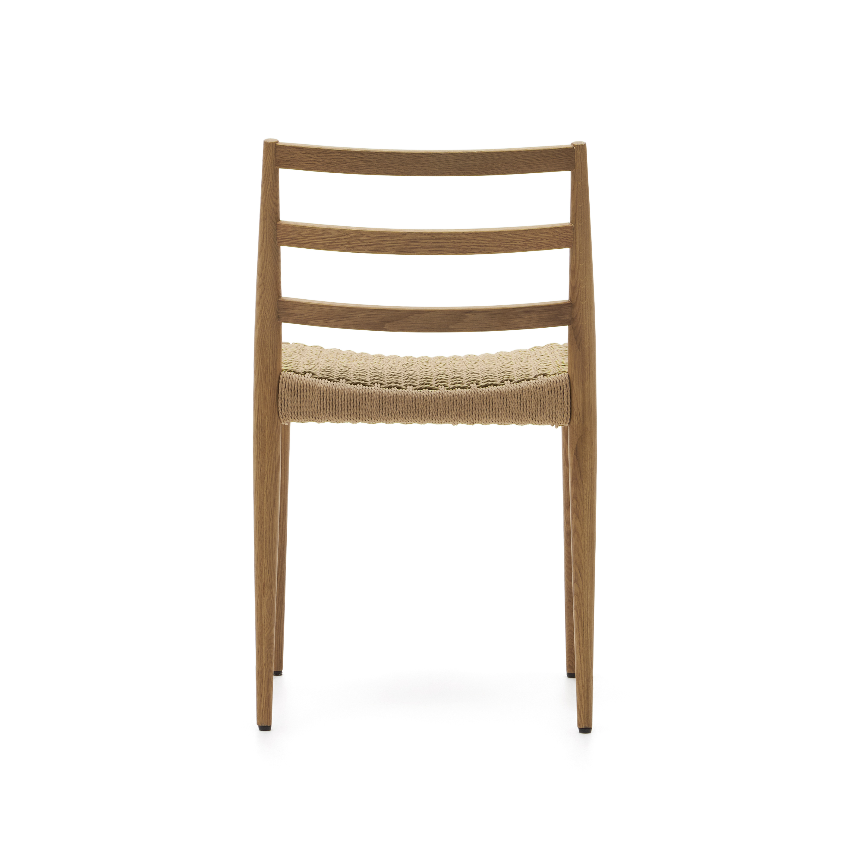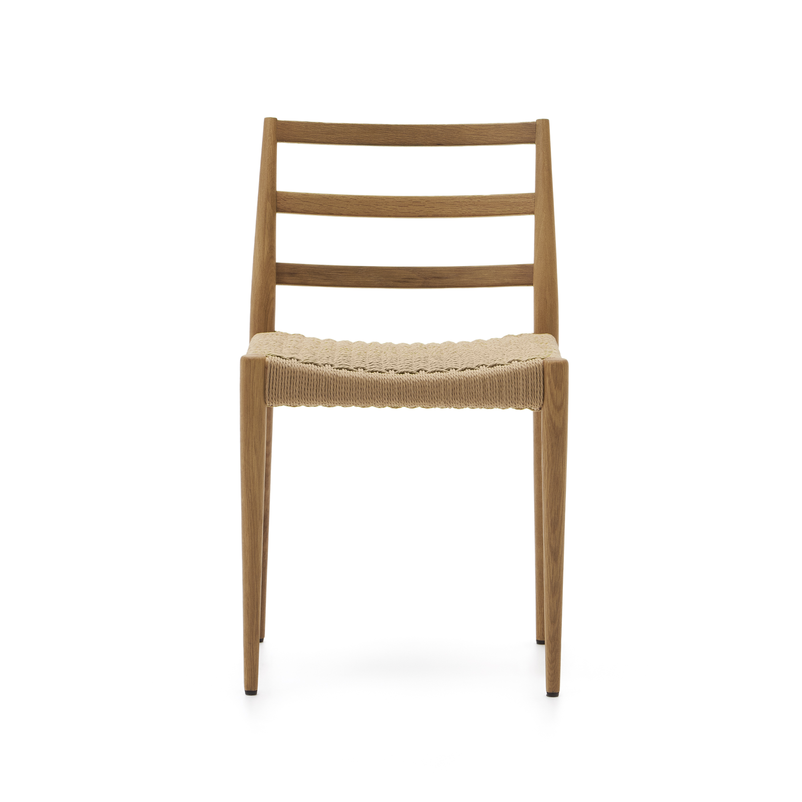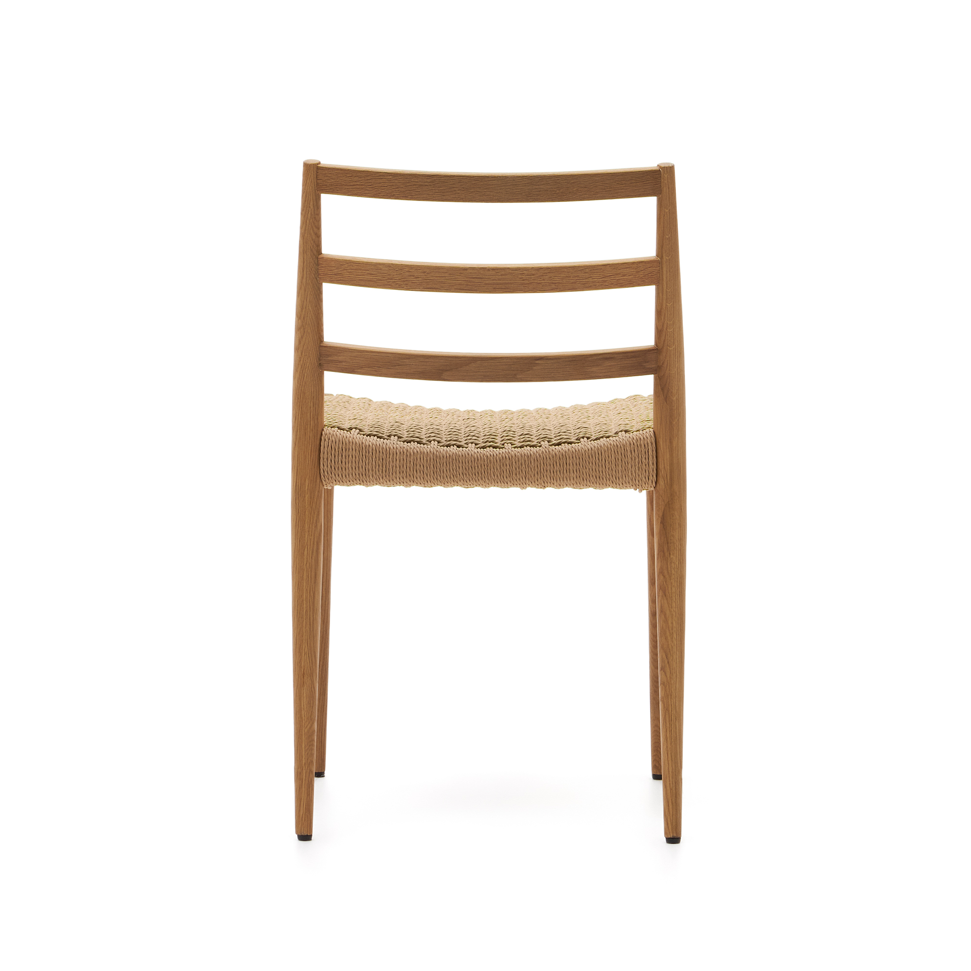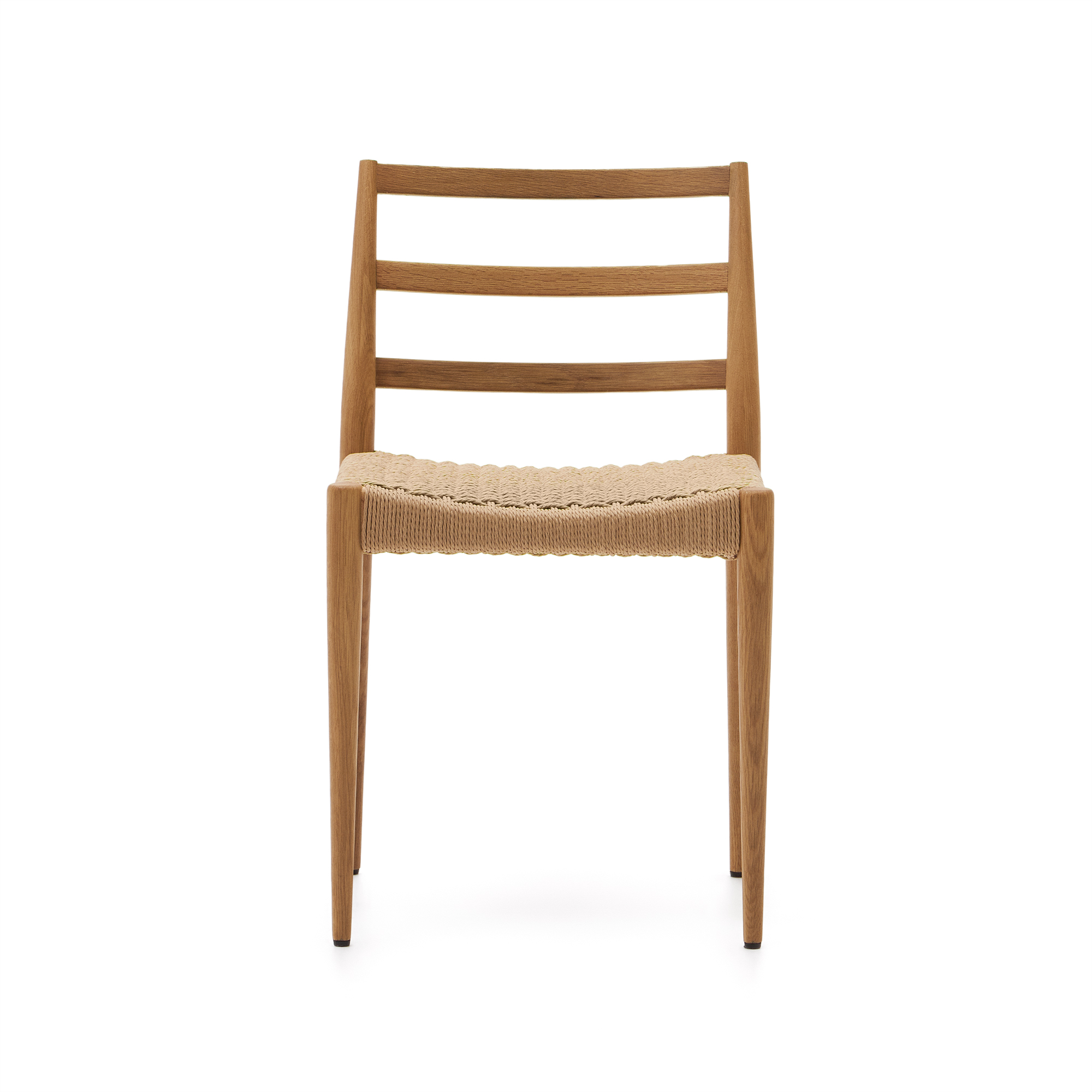 Silla Analy en roble macizo FSC 100% con acabado natural y asiento de cuerda FSC 100%.