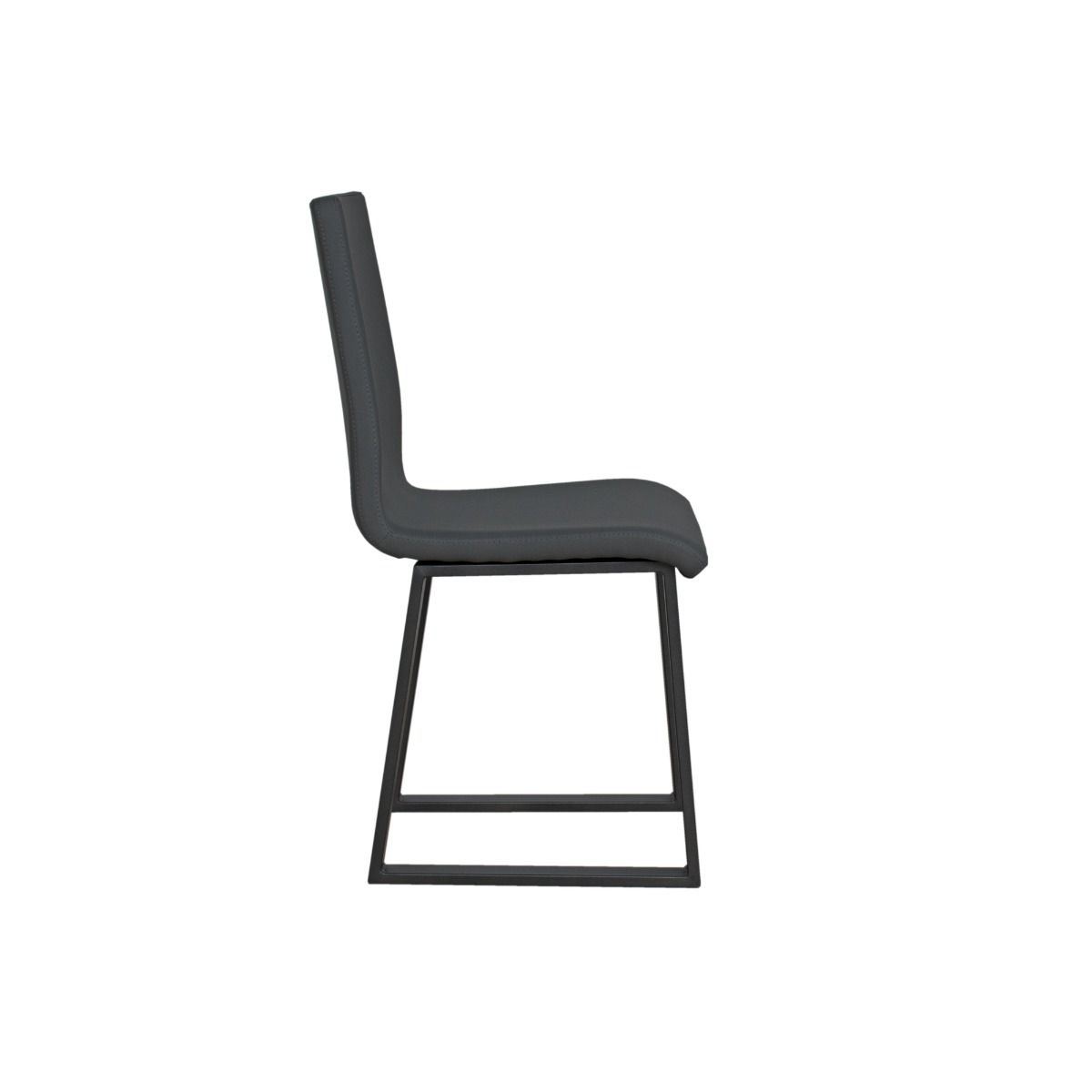 Silla Baffy, una cómoda silla con base de trineo, sin brazos, con patas de metal pintado de color antracita y asiento de madera recubierto de piel sintética ligeramente acolchada.