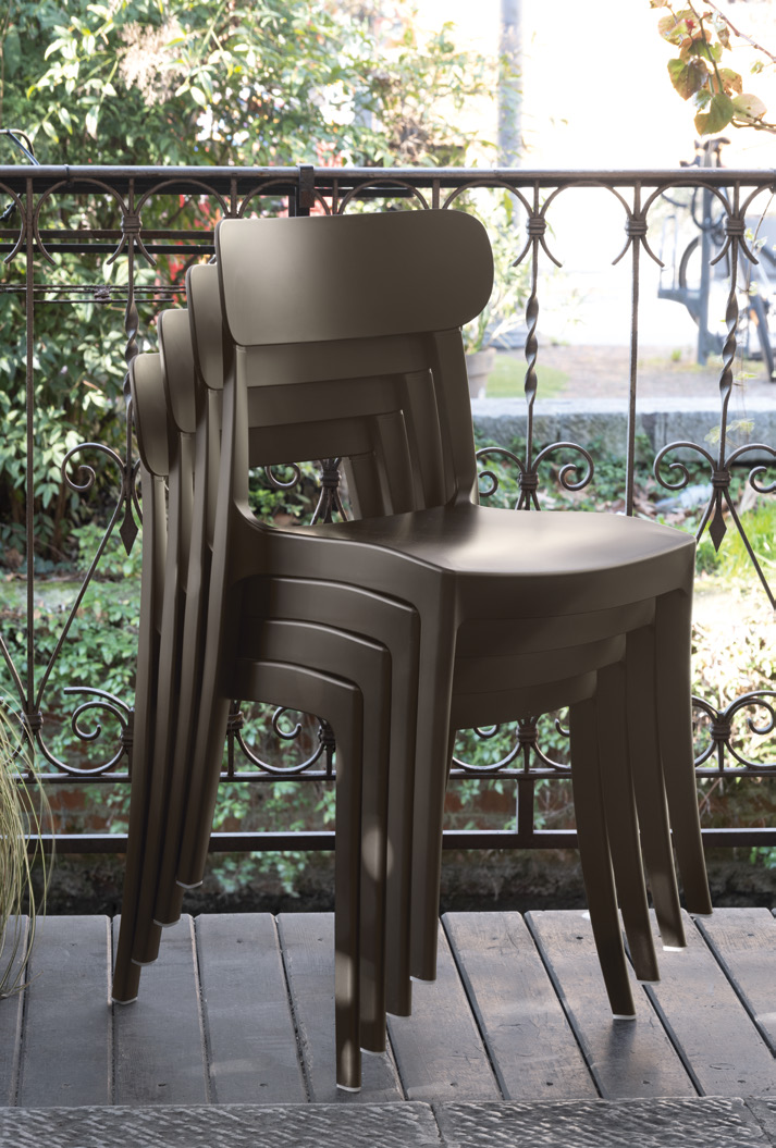 La silla Locanda combina elegancia y modernidad y evoca emocionantes recuerdos del diseño italiano de los años 50. Fabricado en tecnopolímero, ofrece resistencia, ligereza y apilabilidad, manteniendo un aspecto refinado. Las líneas suaves, las superficies curvas y los bordes elegantes se alternan en una danza equilibrada que lo hace ideal para ambientes contemporáneos con un toque retro. También apto para uso exterior gracias a su material.