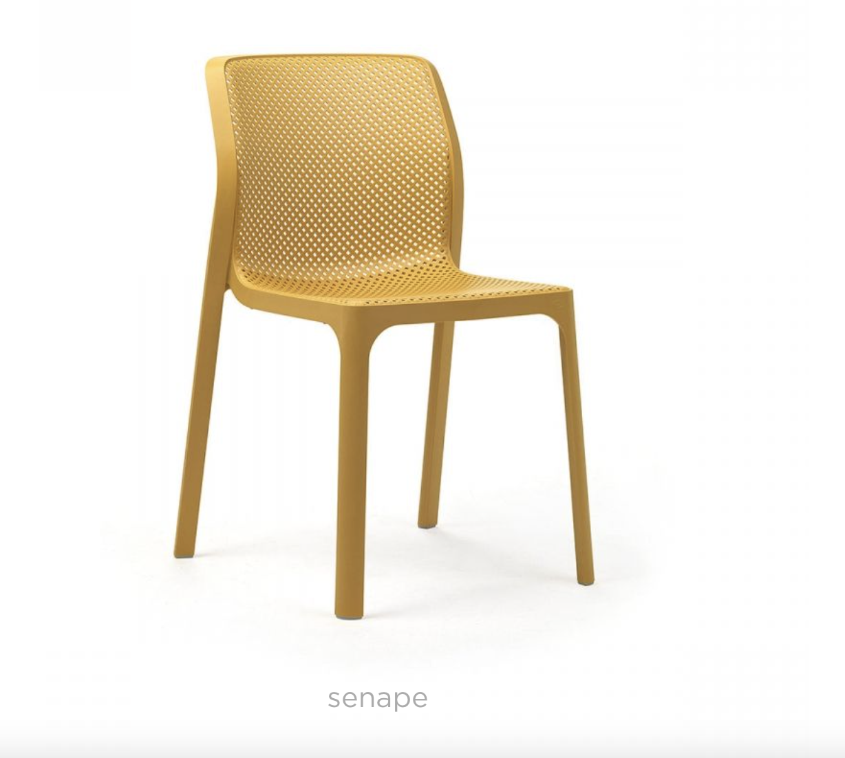 Diseño refinado y atención al detalle para Bit, asiento sin apoyabrazos en resina de fibra de vidrio tratada anti-UV y coloreada en masa. El diseño, el patrón perforado y la variedad de colores hacen que Bit sea adecuado para diferentes contextos tanto en el exterior como en el interior.