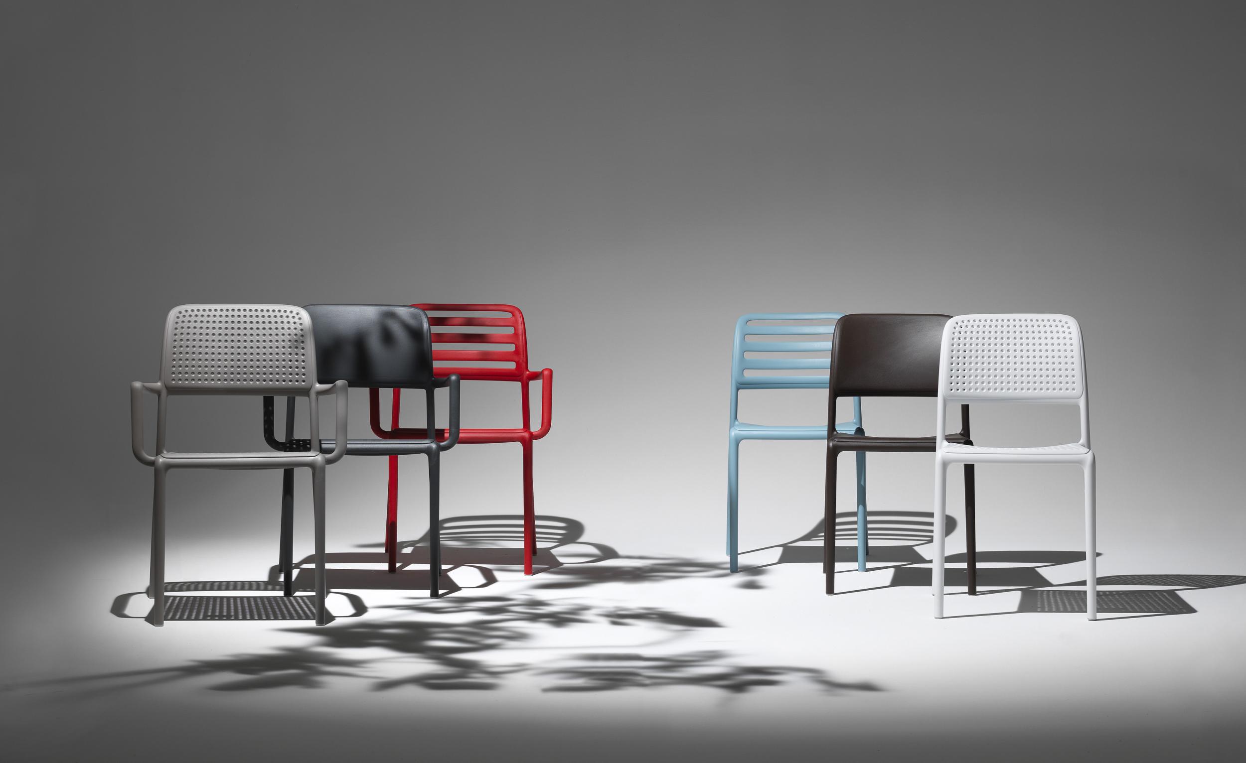 Ligero y fresco, Bora es un asiento sin brazos de resina de fibra de vidrio, con una estructura tubular continua y perfiles redondeados. El asiento y el respaldo forman una sola unidad, realzando estéticamente sus formas que evocan un suave acolchado textil.