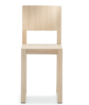 Silla con estructura de roble macizo, asiento y respaldo de nido de abeja. Disponible en roble blanqueado, teñido de wengé o teñido de gris claro.