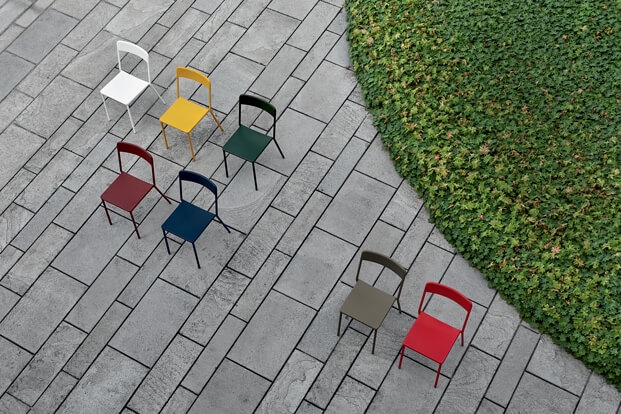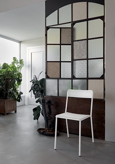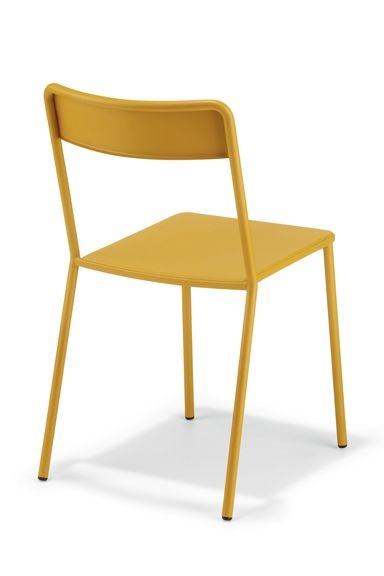 Las líneas del perfil tubular de metal, que diseñan el asiento y el respaldo, son tales que le dan un carácter emblemático. Gracias a su simplicidad y los detalles diseñados, se puede producir en cuatro variantes.