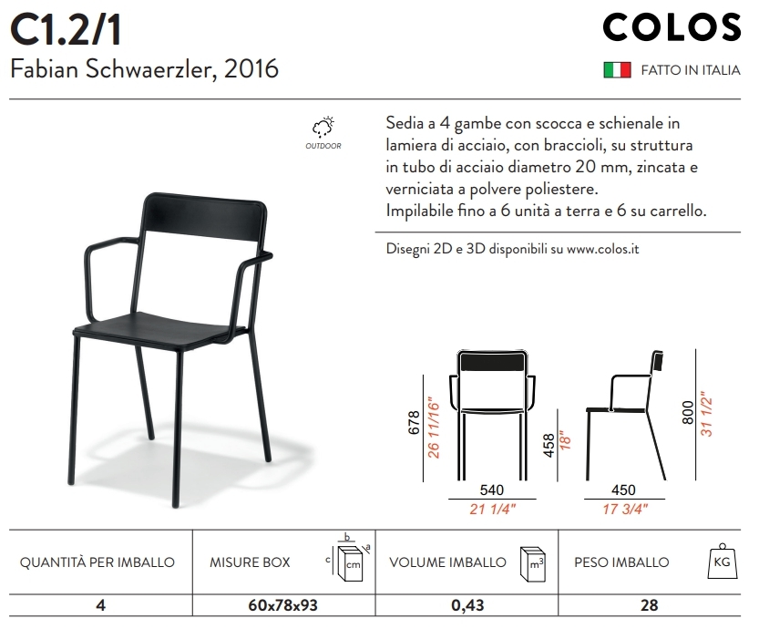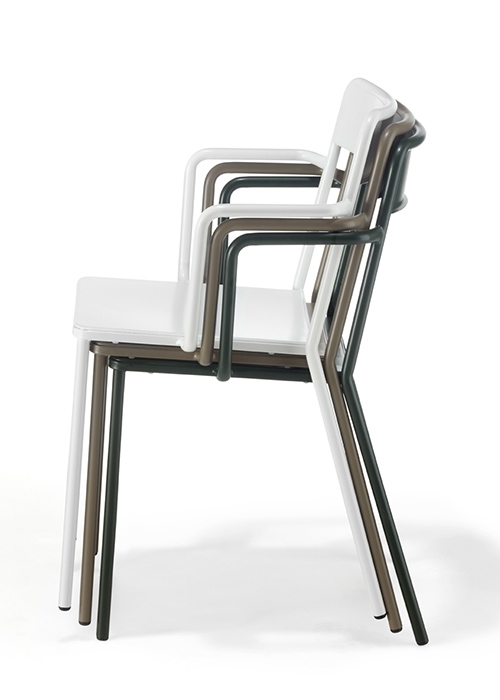Como en el modelo anterior, la elección de los materiales y la tecnología de acabado, que consiste en un proceso de galvanizado del metal antes de la pintura en polvo, hacen de esta silla una excelente oportunidad también para situaciones extremas de uso en exteriores, en todas las versiones. metal.