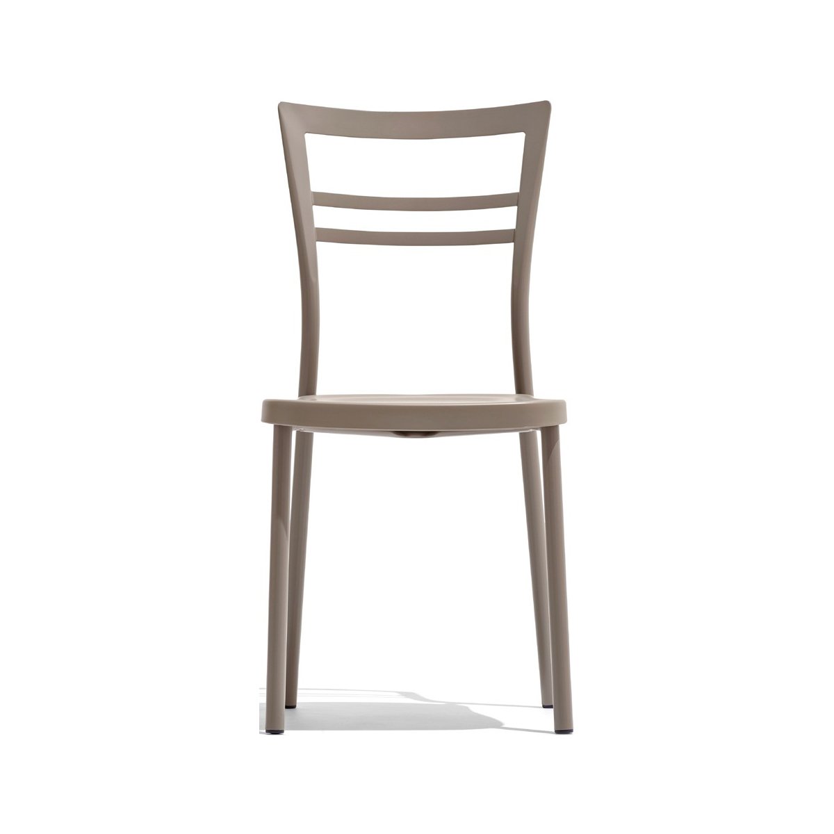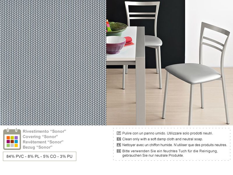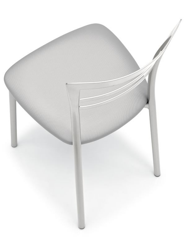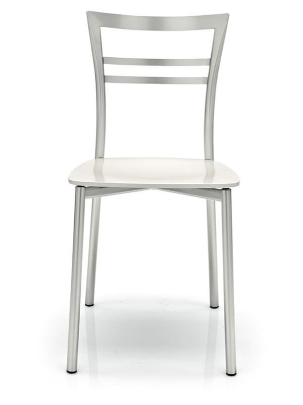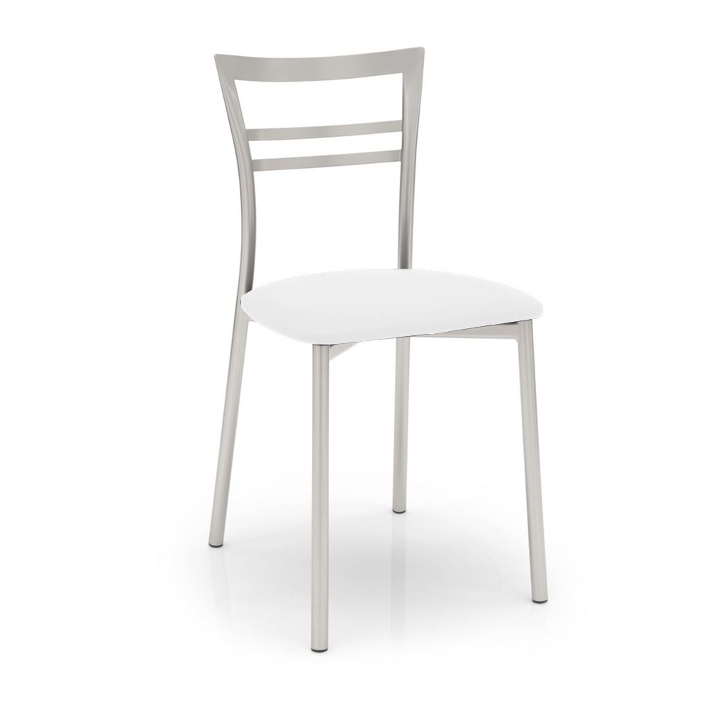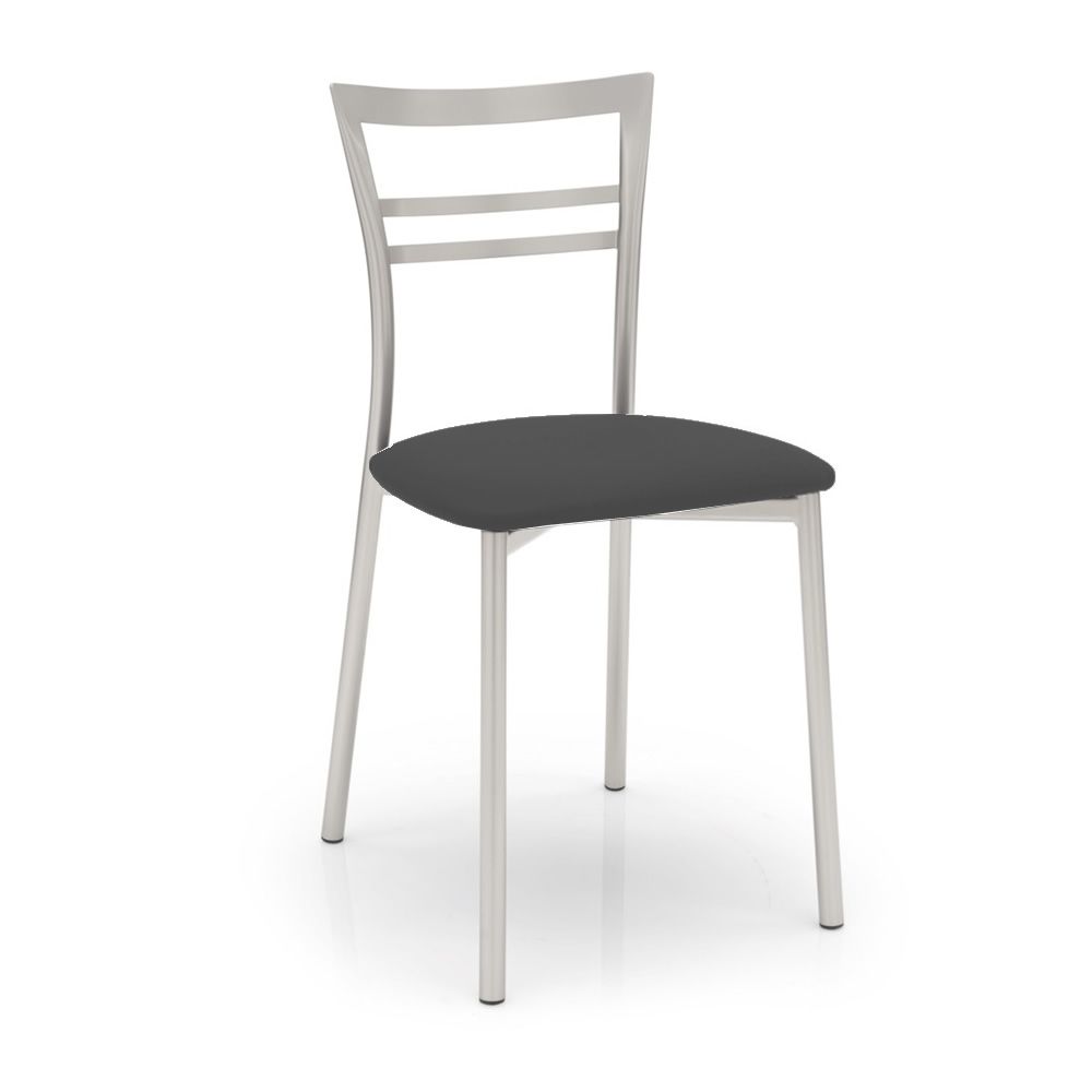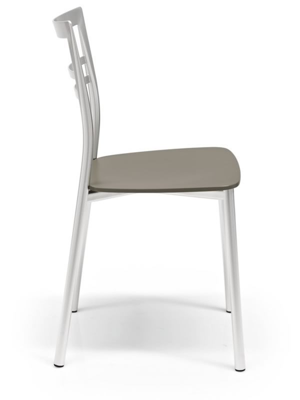 La estructura metálica de la silla está disponible en metal con acabado pintado satinado, lacado blanco óptico mate, lacado gris tórtola mate, lacado gris mate o lacado negro mate.