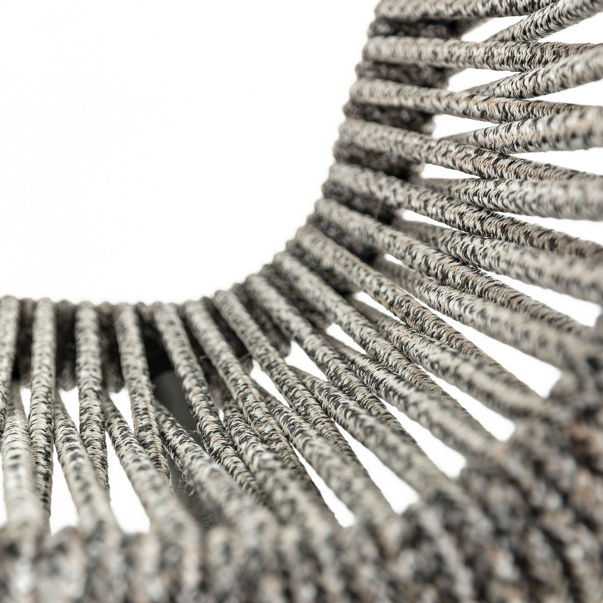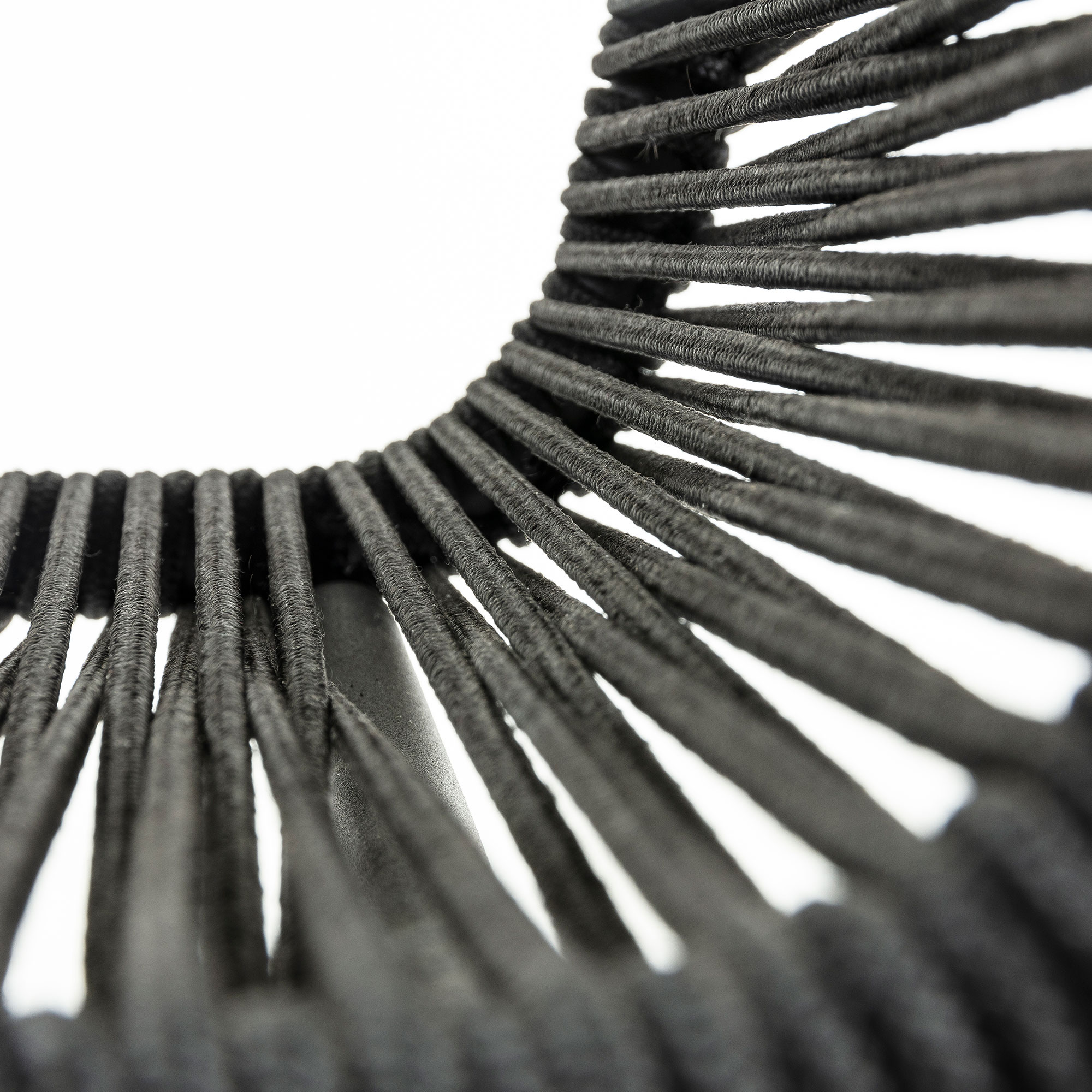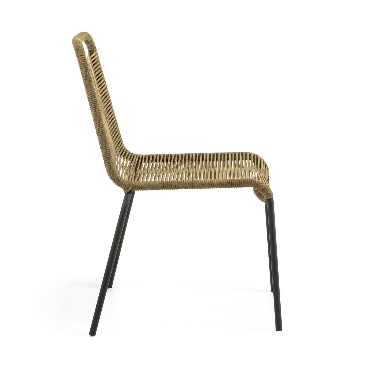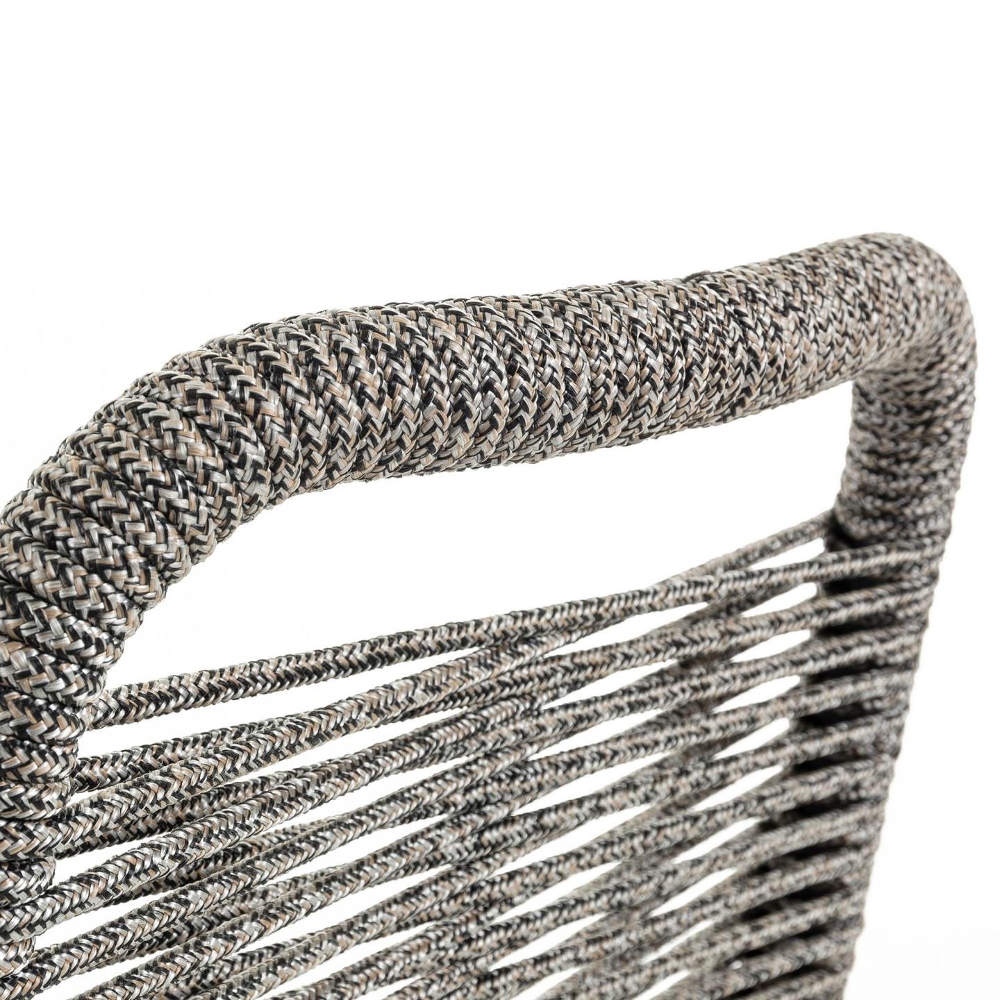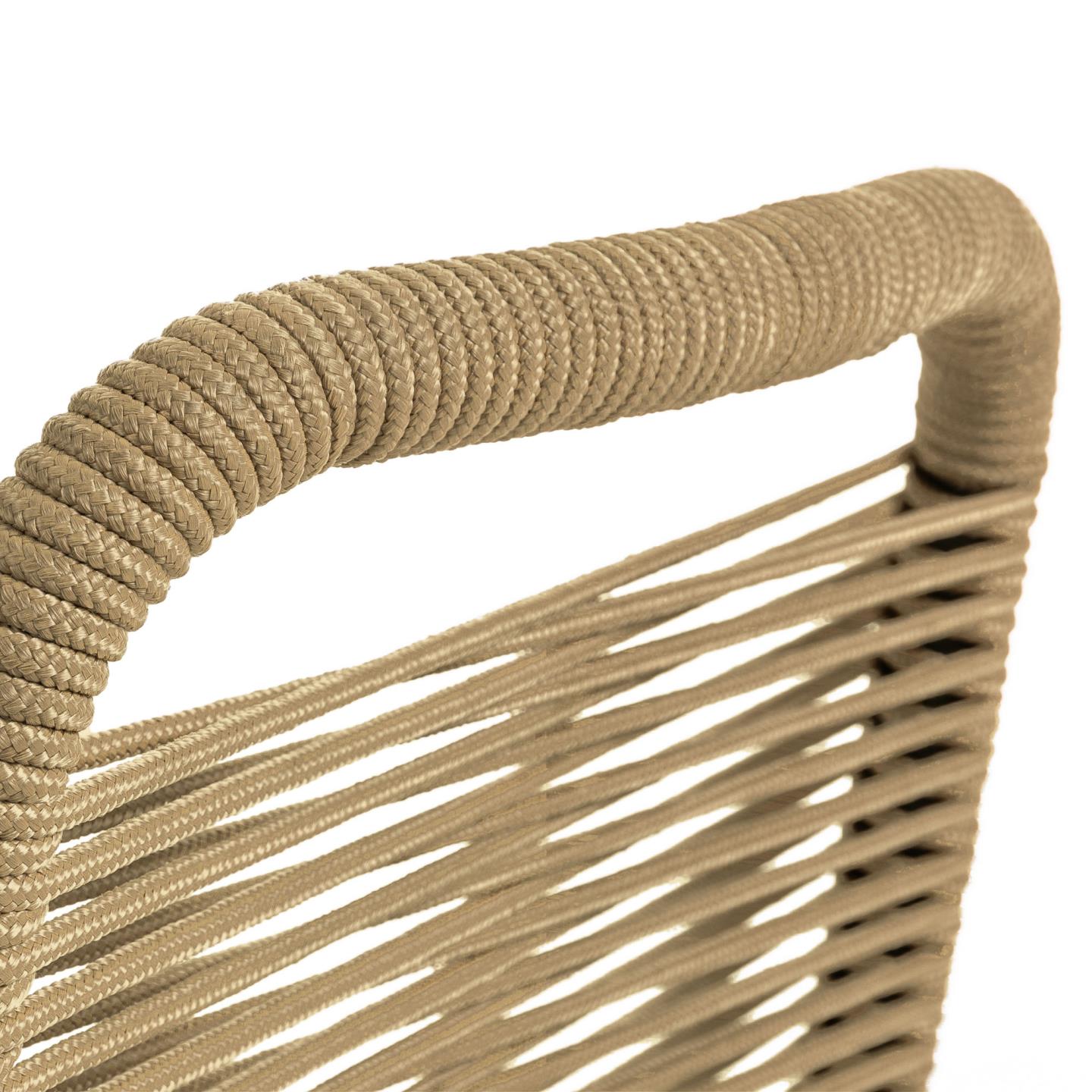 Silla con estructura de acero galvanizado pintado en polvo. Asiento y respaldo en cuerda de poliéster resistente a los rayos UV. Apilable. Para uso interior y exterior bajo techo.