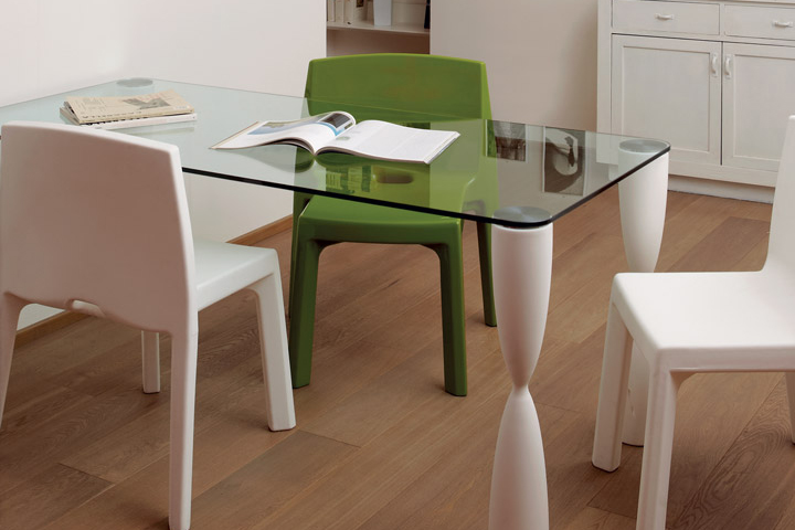 El perfil moldeado y ligeramente curvado del respaldo hace que Q4 sea especialmente acogedor y perfecto para espacios interiores y exteriores de eventos contract e informales, o en cocinas y jardines de casas particulares.
