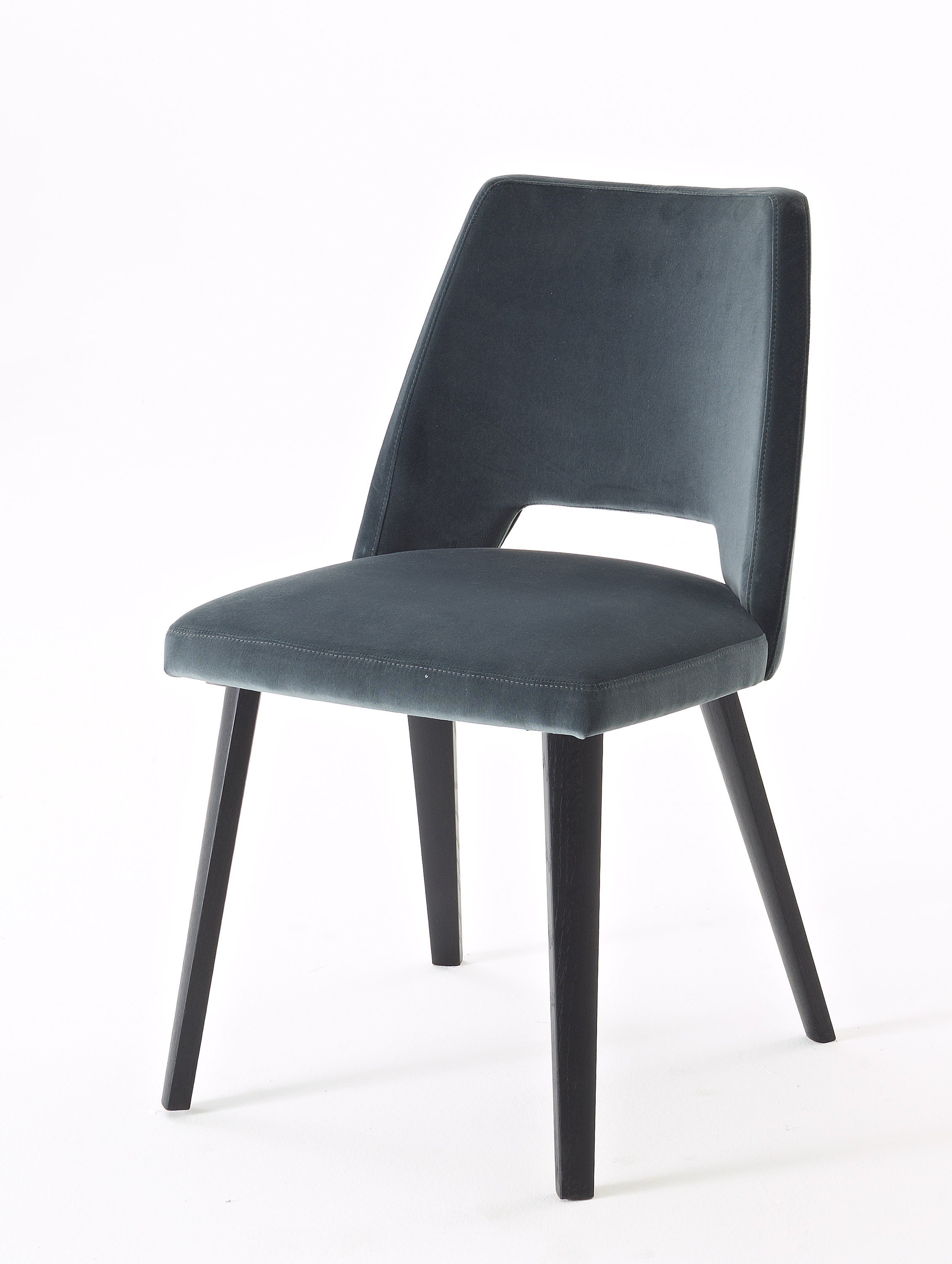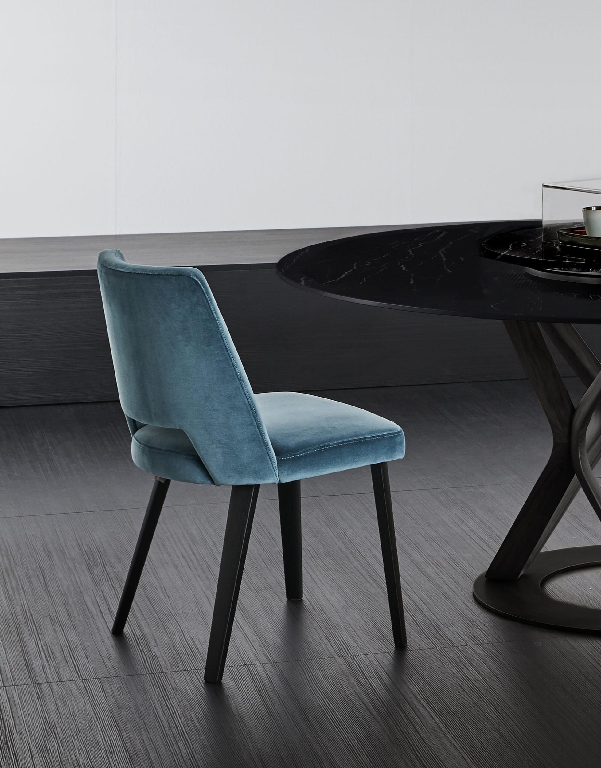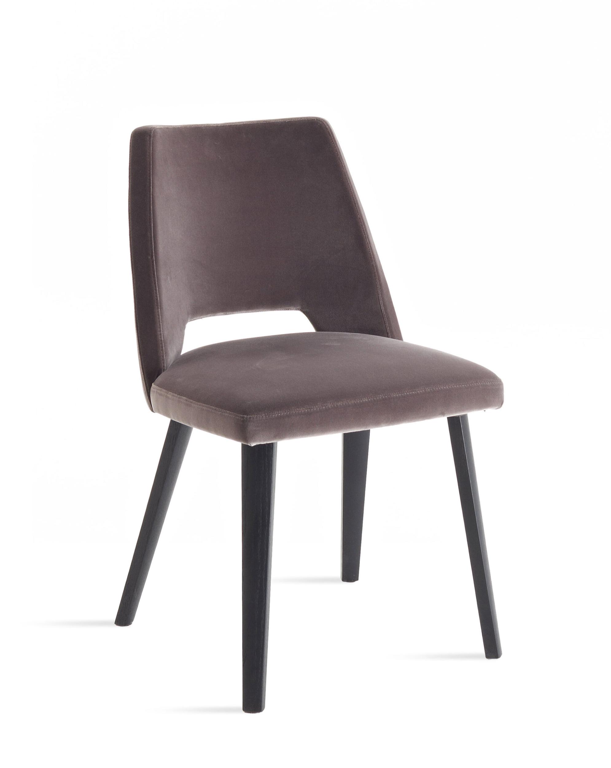 Silla con estructura de roble acolchada, tapizada en tela o piel.