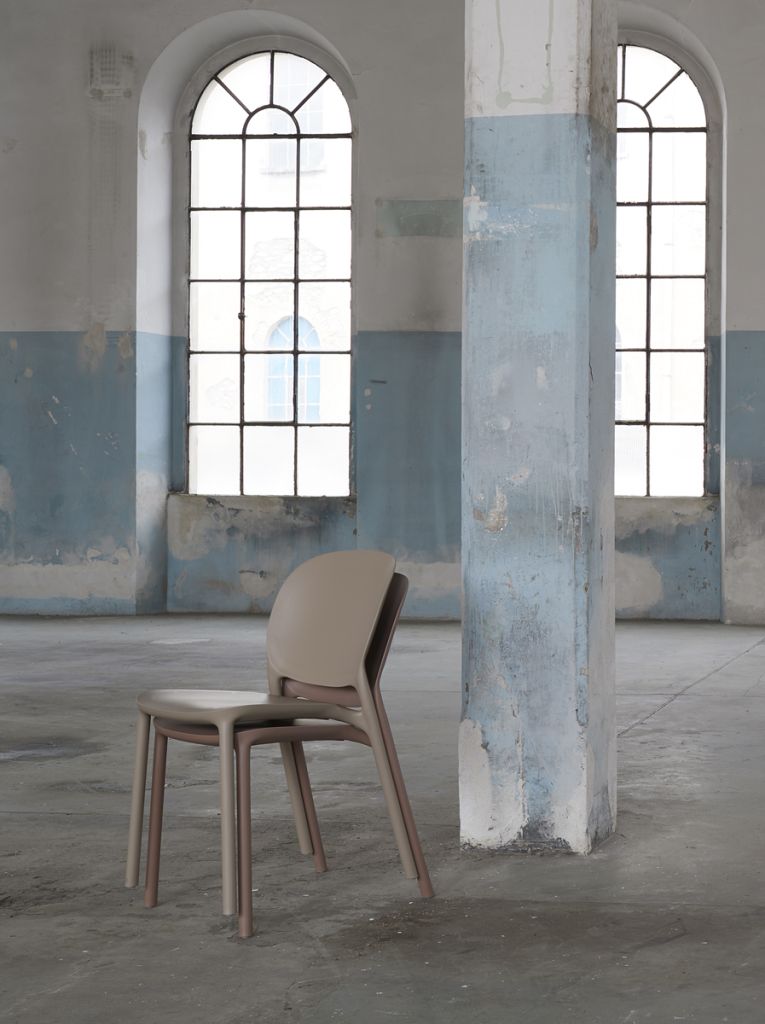 Para el modelo HUG se ha elegido un tecnopolímero industrial certificado regenerado posconsumo (PCR), elevando tanto la silla como el sillón a un nuevo estándar ético y de calidad.