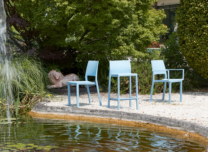 Líneas lineales y sobrias, decididas y definidas, ergonómicas y cómodas. Kate, gracias a la forma particular de las patas, crea una solución técnica única que permite un apilamiento perfecto, sin juntas, excepcionalmente estable, con la huella más pequeña posible, para optimizar el espacio. Interpreta cualquier ambiente con facilidad, desde el hogar hasta la comunidad y es ideal para espacios interiores y exteriores. Disponible en la versión con y sin reposabrazos, en diferentes colores, también sobre palets.