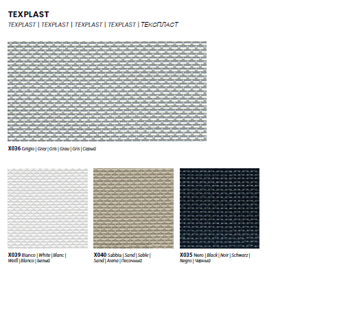Asiento y respaldo en Texplast, un material robusto y de fácil limpieza.