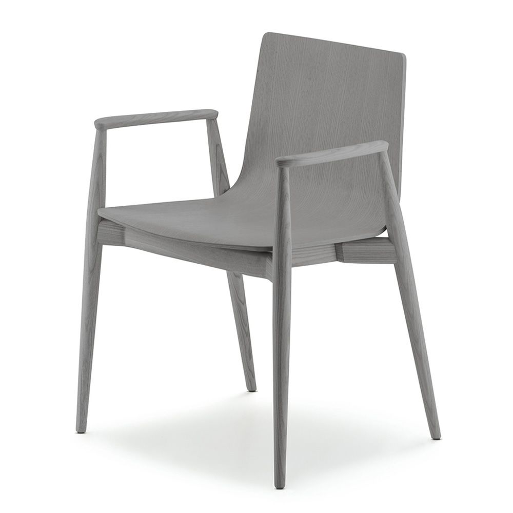 Estructura en madera de fresno y madera contrachapada blanqueada, teñida de negro o gris claro.