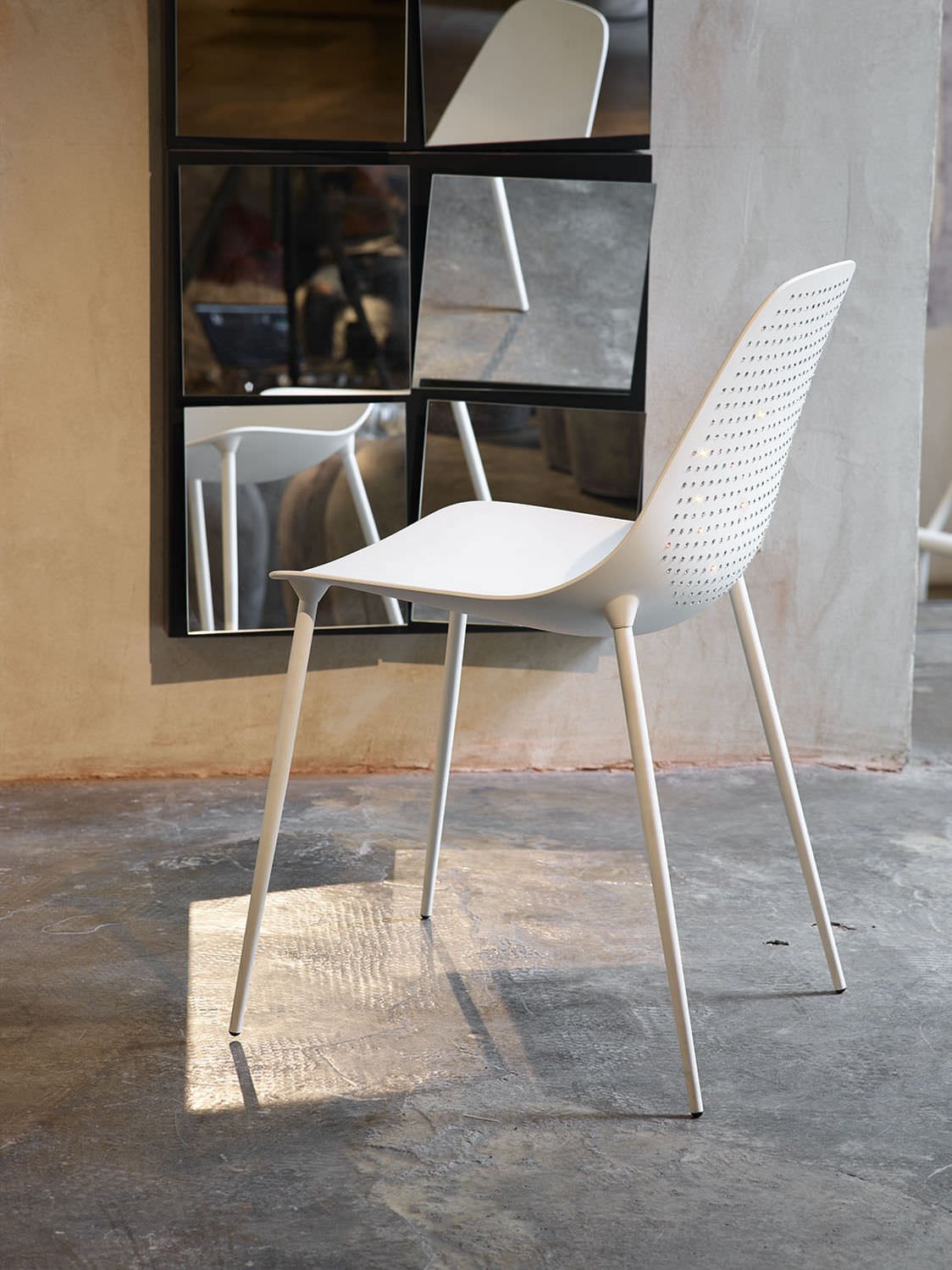 Silla con cuerpo de aluminio fundido a presión y estructura de metal galvanizado, pintado interior / exterior, no apilable.