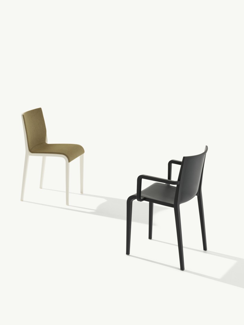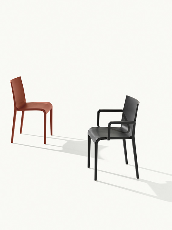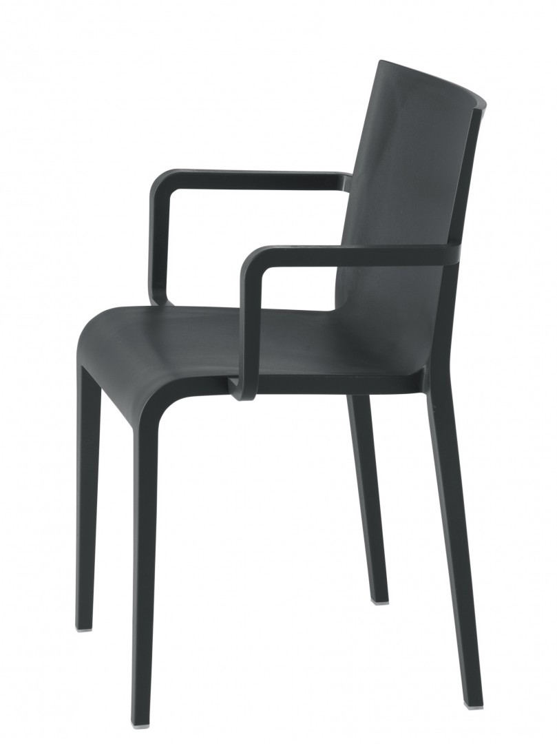 Silla monobloque con brazos en polipropileno inyectado con tecnología air molding.