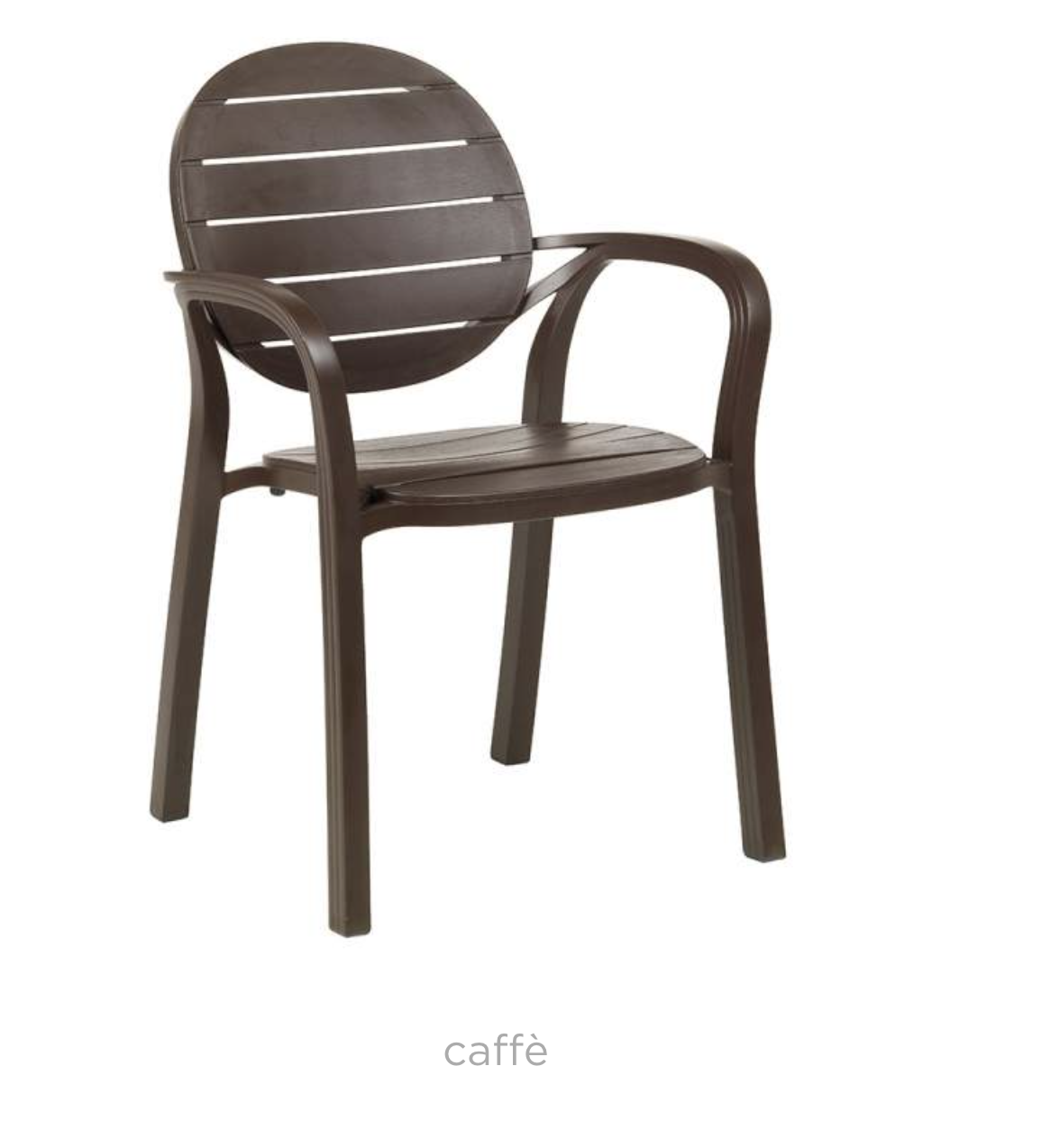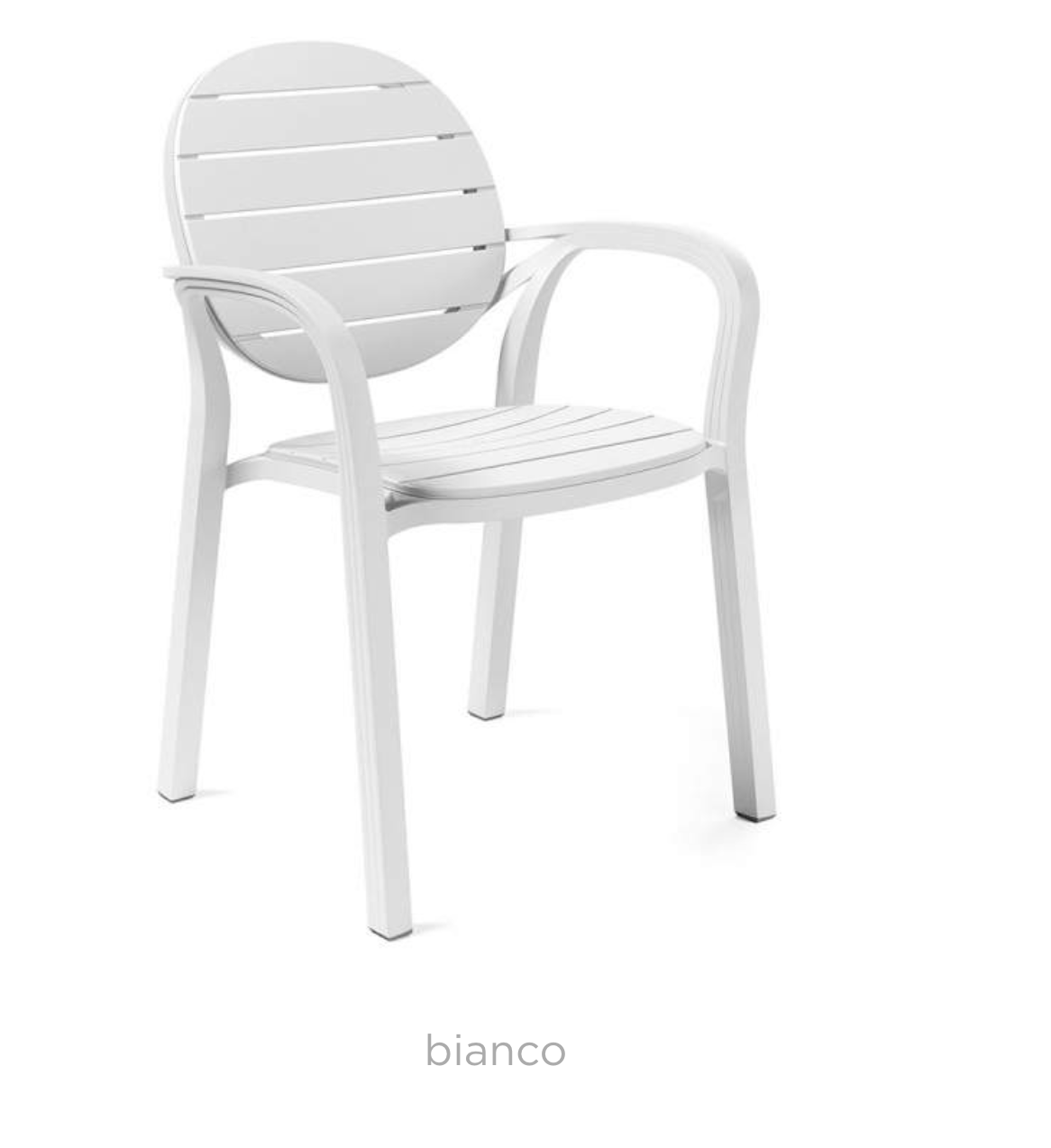 La silla Palma de Nardi es una silla de exterior con un diseño clásico y cómodo, ideal para amueblar con elegancia jardines, terrazas, balcones y espacios contract. Fabricada en resina de fibra de vidrio de alta calidad, cuenta con tratamiento anti-UV , está coloreada en masa y es totalmente reciclable .