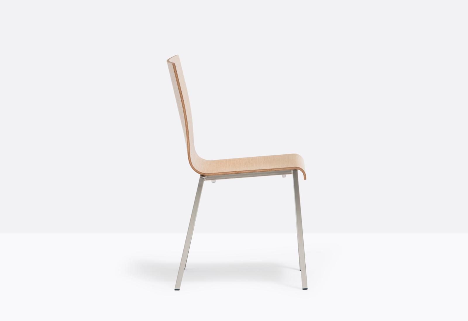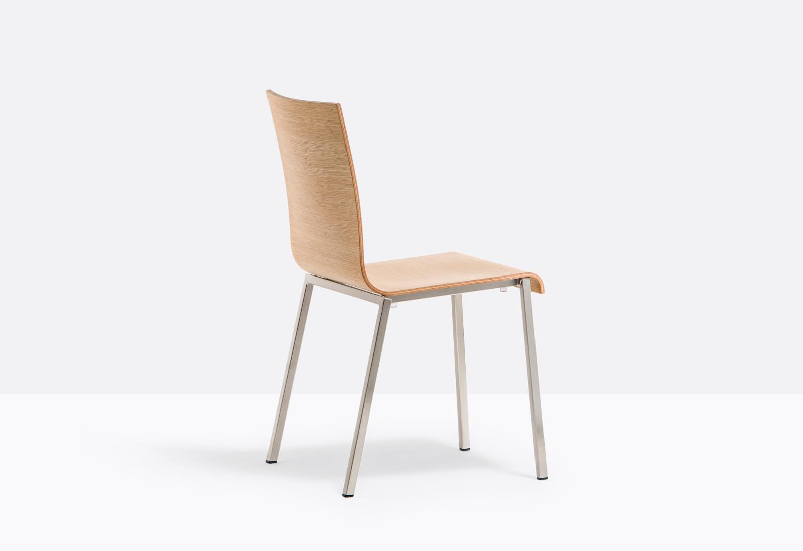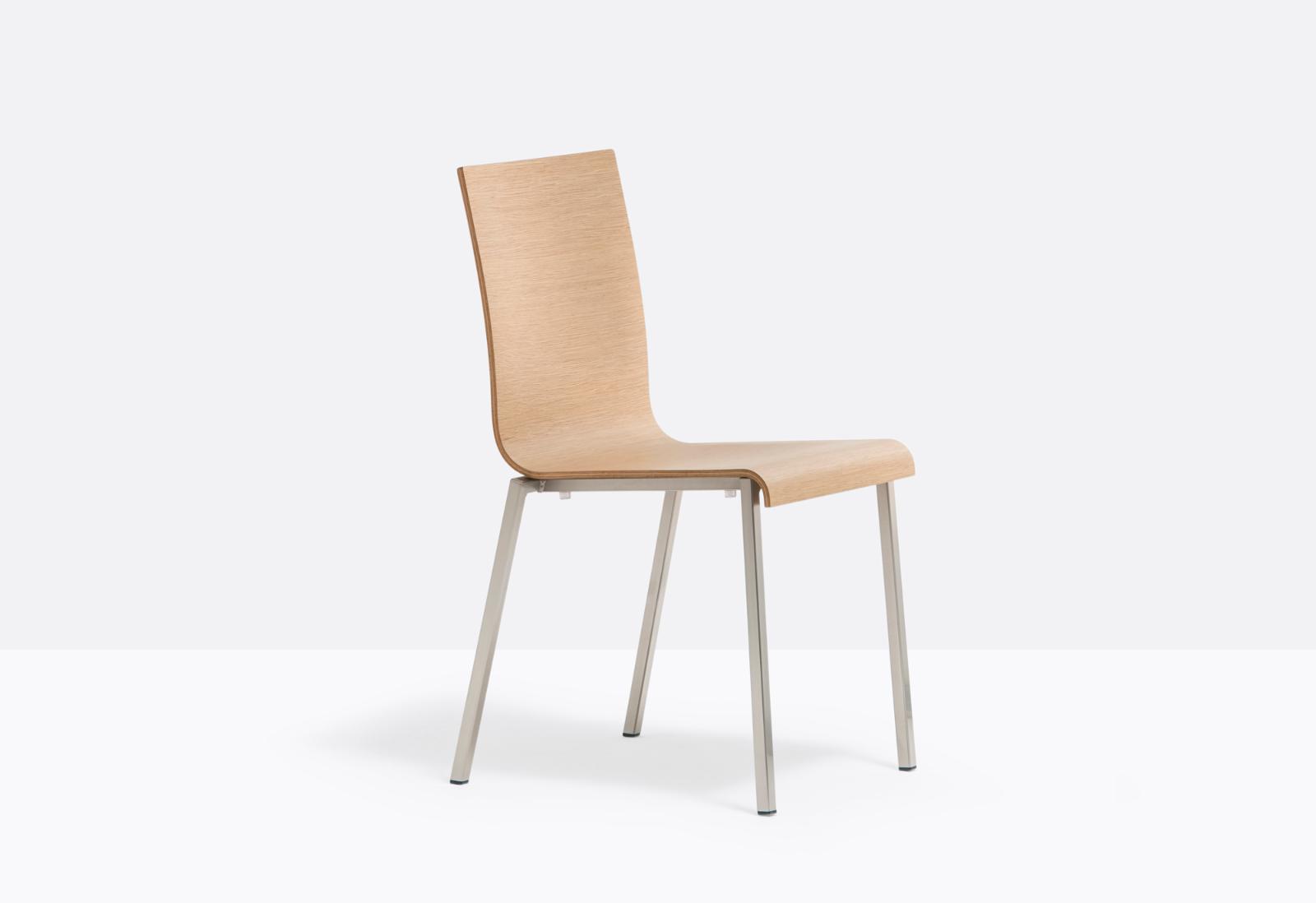 Silla apilable con carcasa de madera contrachapada chapada en roble disponible en diferentes acabados.