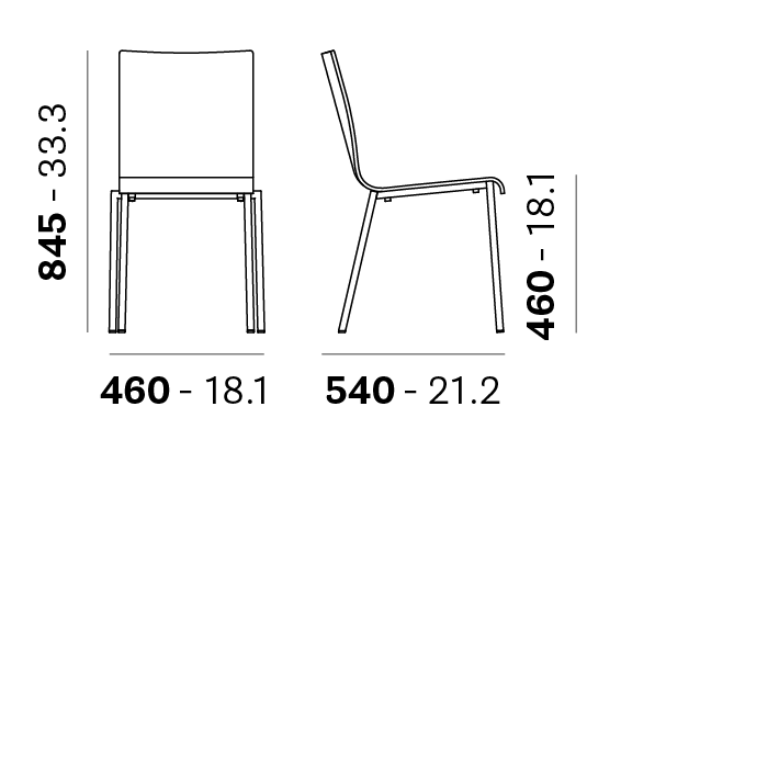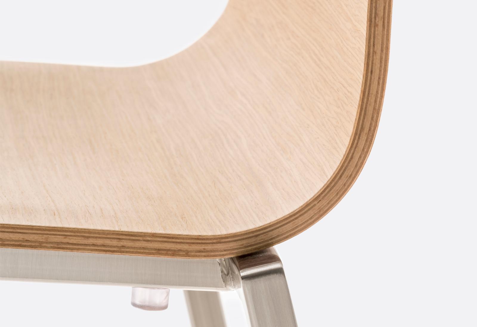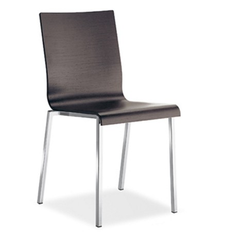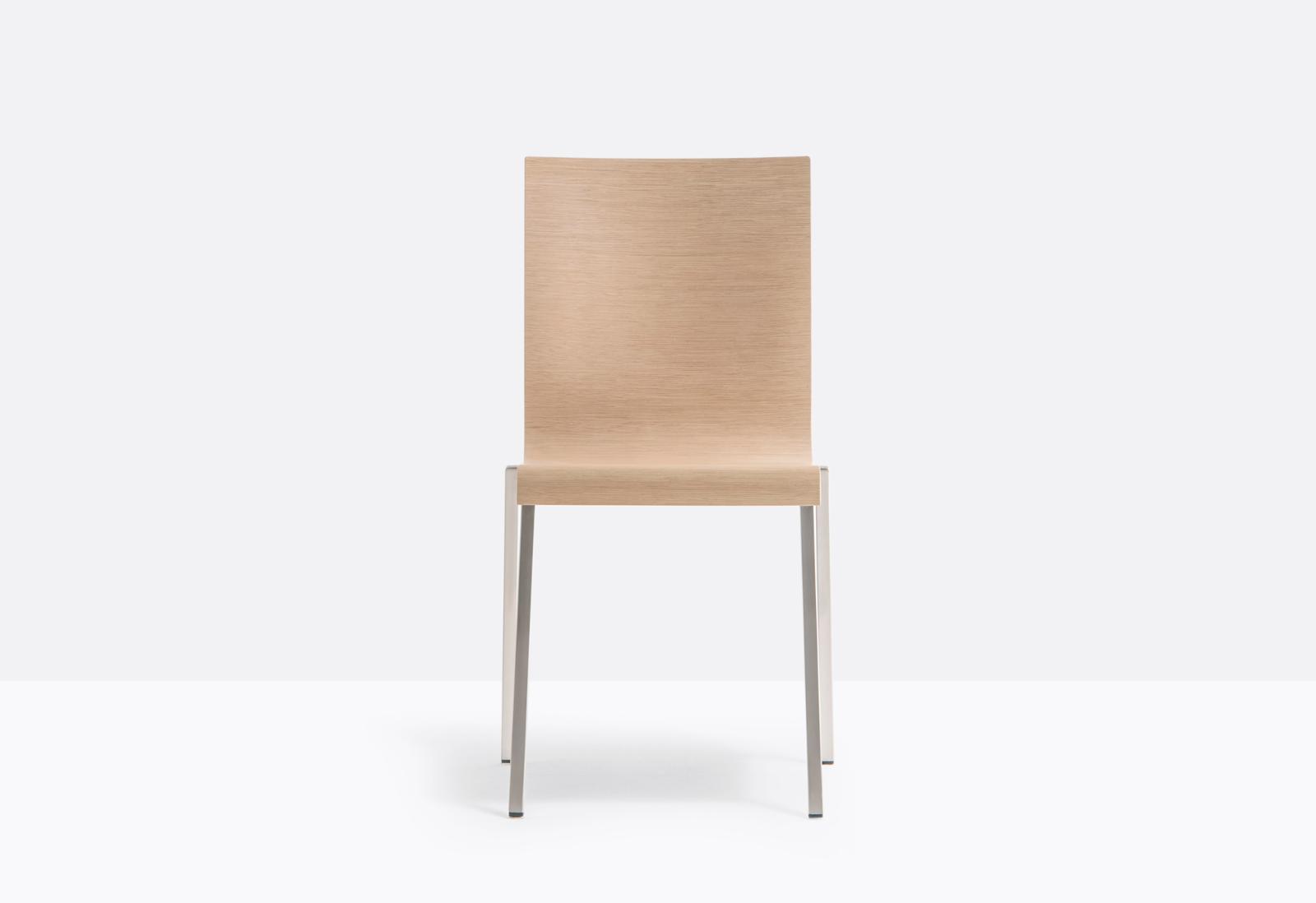 Silla apilable con carcasa de madera contrachapada chapada en roble disponible en diferentes acabados.