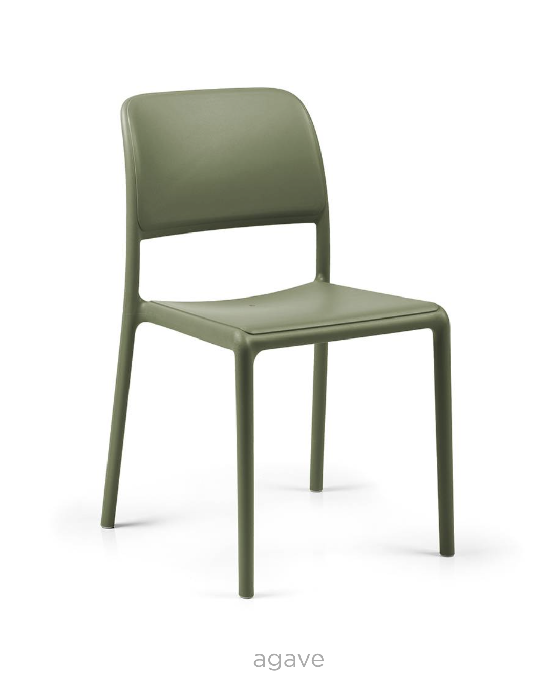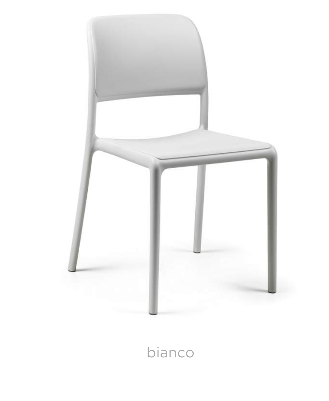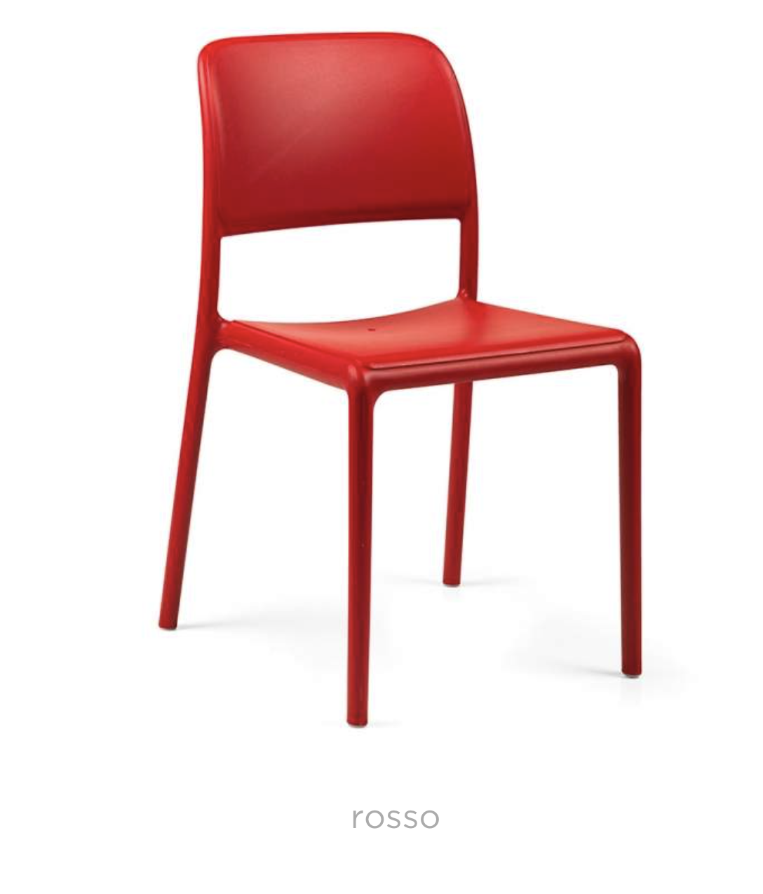 Silla monobloque sin reposabrazos. Polipropileno de fibra de vidrio con tratamiento anti-UV y coloreado en masa. Acabado mate. Incluye patas antideslizantes. Resina reciclable.