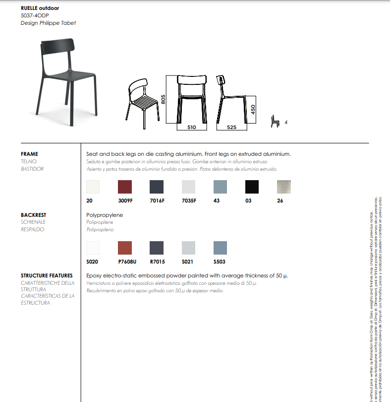 En los pequeños callejones de los pueblos de la campiña francesa (los llamados "ruelles") es típico sentarse en las sillas tradicionales de bistró y brasserie, ahora revisitadas por Philippe Tabet en clave contemporánea. Ruelle ha ganado la cuarta edición del infiniti Design Context. Es una silla con estructura de aluminio inyectado y patas de aluminio extruido. Gracias a su forma y características, Ruelle se puede utilizar en bares y restaurantes, pero también en exteriores.