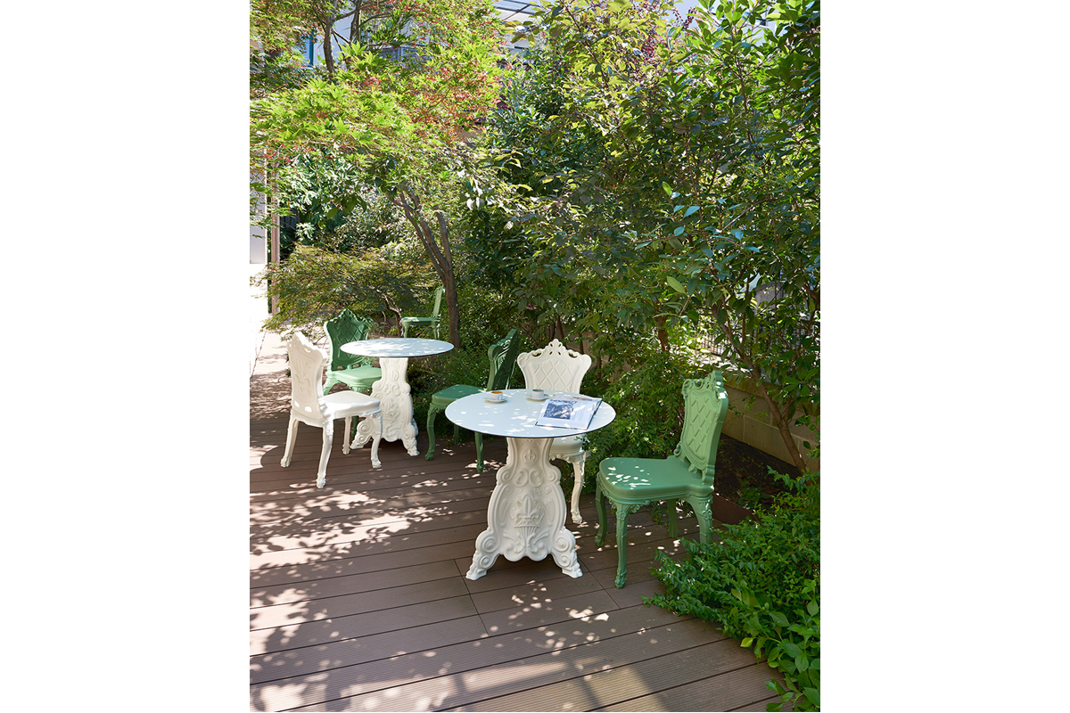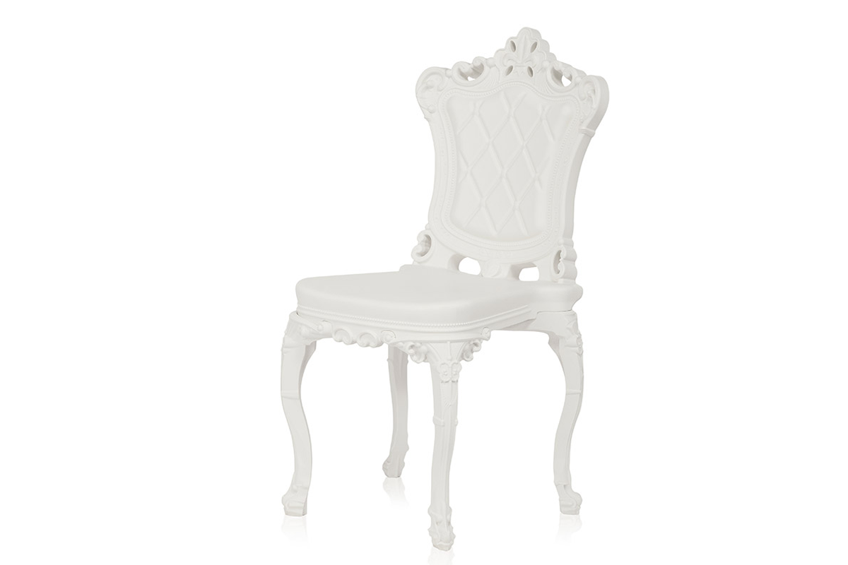 La silla Princess of Love revisita el estilo barroco, ideal para decorar ambientes modernos, aportando un look clásico y elegante. La estructura de la Princesa del Amor se caracteriza por detalles y acabados con estilo rococó, ideal para cualquier tipo de ambiente interior o exterior, como salones, tiendas y restaurantes, así como para el sector contract.