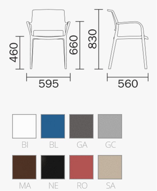 Sillón de polipropileno cargado con fibra de vidrio, apto tanto para interior como para exterior. La estructura del respaldo forma un asa grande en la parte superior que facilita la elevación y el movimiento y le da un carácter distintivo. Gracias a la forma cónica de las patas, parece ligera y elegante, a la vez que es robusta e indeformable. Apilable.