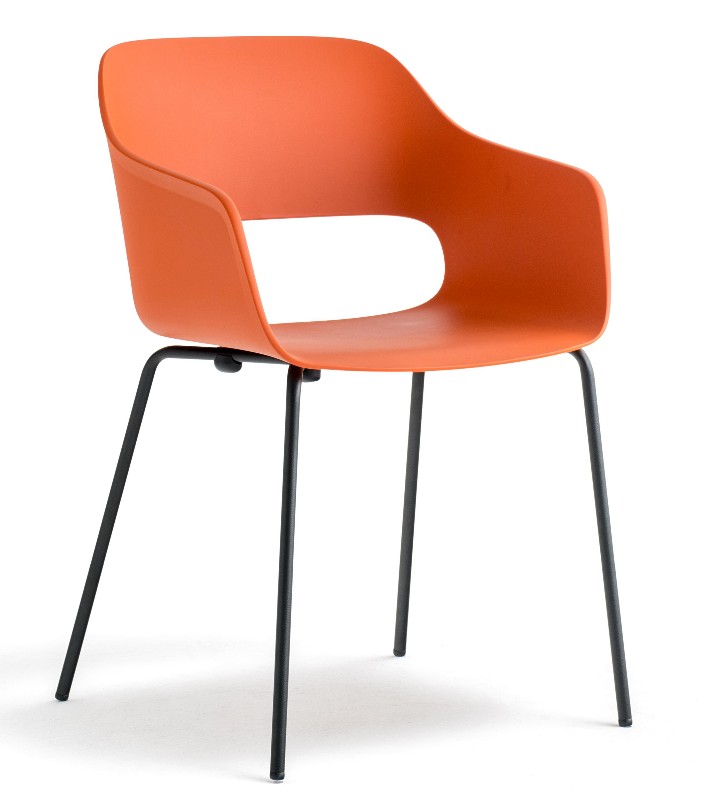 La carcasa del nuevo sillón Babila está en tecnopolímero, una gran abertura caracteriza la parte trasera del respaldo. La elasticidad y la tridimensionalidad del material plástico ofrecen la máxima comodidad en una apariencia elegante. Patas en tubo de acero Ø16mm. Apilable.