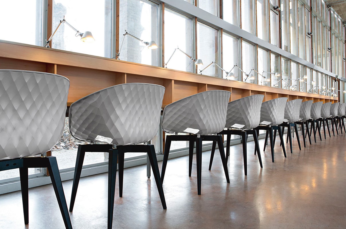 La silla de diseño Uni-Ka 599 Et-al está diseñada para equipar espacios profesionales : robusta y fácil de mantener, es adecuada para su uso en colectividades, lugares públicos, oficinas, bares, hoteles y restaurantes.
