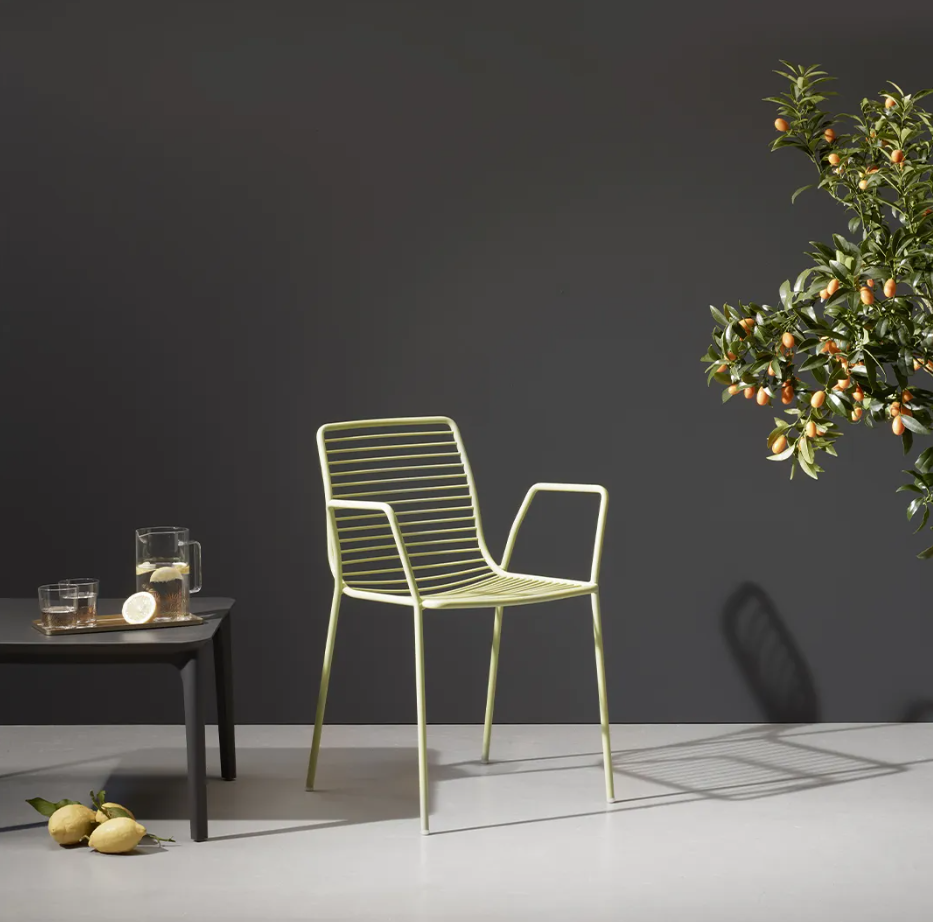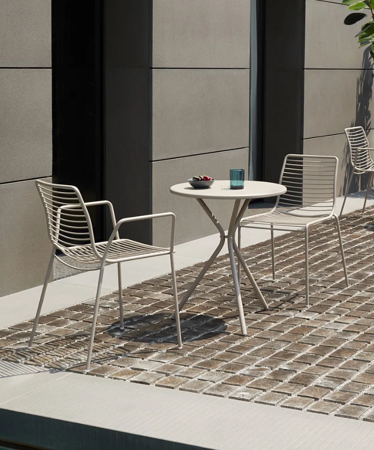 Apilable y práctico, está diseñado para amueblar con estilo terrazas, jardines, espacios contract y ambientes residenciales.