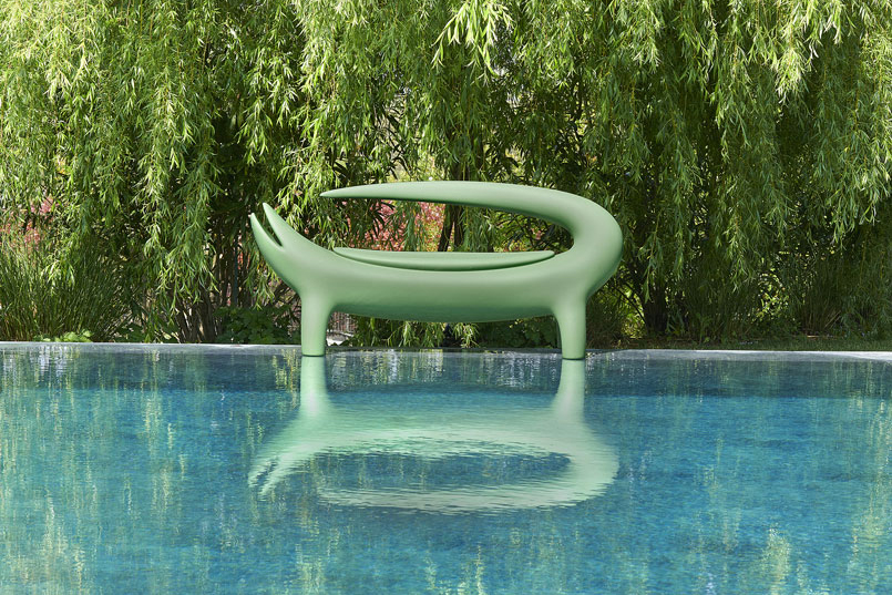 Con su forma sutil pero inconfundible, Big Kroko es el sofá de dos plazas ideal para relajarse al aire libre. A partir de una idea de síntesis entre escultura y proceso industrial, Marcantonio transforma con su ironía uno de los animales más iconográficos en un asiento de formas redondas e inconfundibles, con claras referencias a la naturaleza y al arte contemporáneo. Además de los colores estándar, Big Kroko se presenta en tres variantes de color en bioplástico derivado del refinado de la caña de azúcar, que recuerdan los colores naturales de la tierra y que SLIDE utiliza por primera vez en el mundo del diseño.