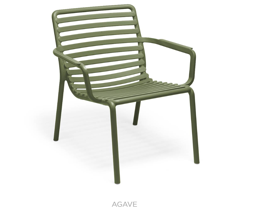 Sillón monobloque. Material: polipropileno de fibra de vidrio con tratamiento anti-UV y teñido en masa. Apilable. Acabado mate. Equipado con pies antideslizantes. Cojín disponible bajo pedido. Resina reciclable.
