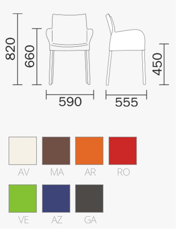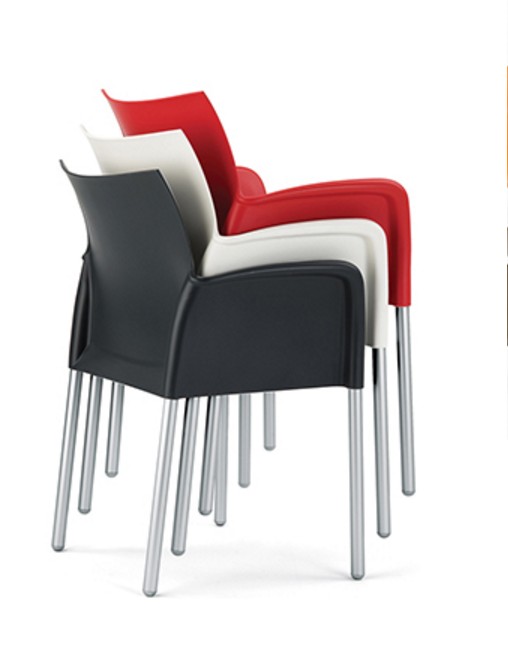 Sillón apilable con carcasa de polipropileno y patas en tubo de aluminio anodizado con un diámetro de 28 mm. Cómodo, envolvente y con un diseño sobrio, está disponible en diferentes colores. Se puede usar tanto en interiores como en exteriores.