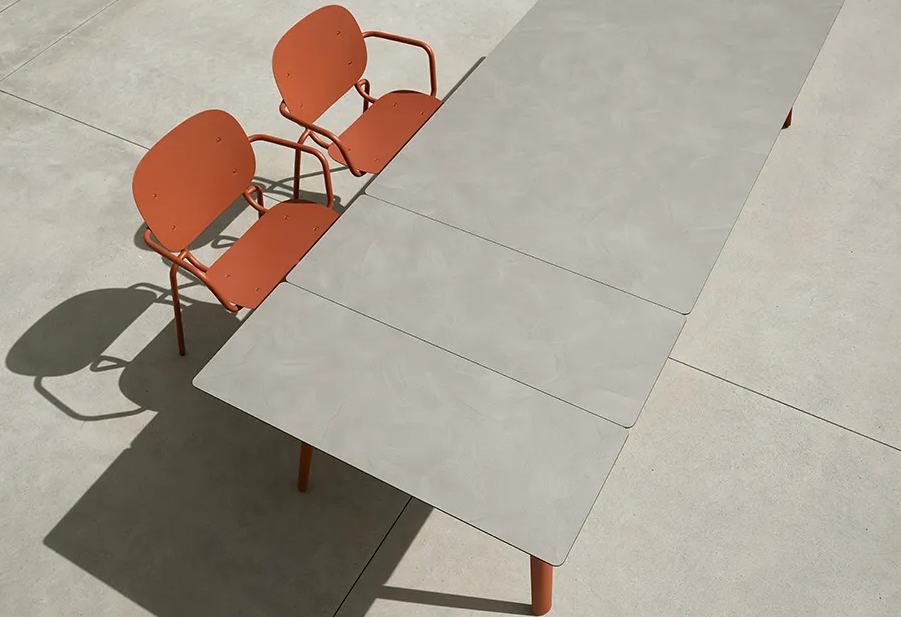 Ecléctica y camaleónica, Si-Si no se limita a seguir las tendencias, sino que ofrece una nueva idea de mobiliario “inteligente”: una silla ligera, apilable y duradera, capaz de responder con flexibilidad a las necesidades de espacio y de uso.