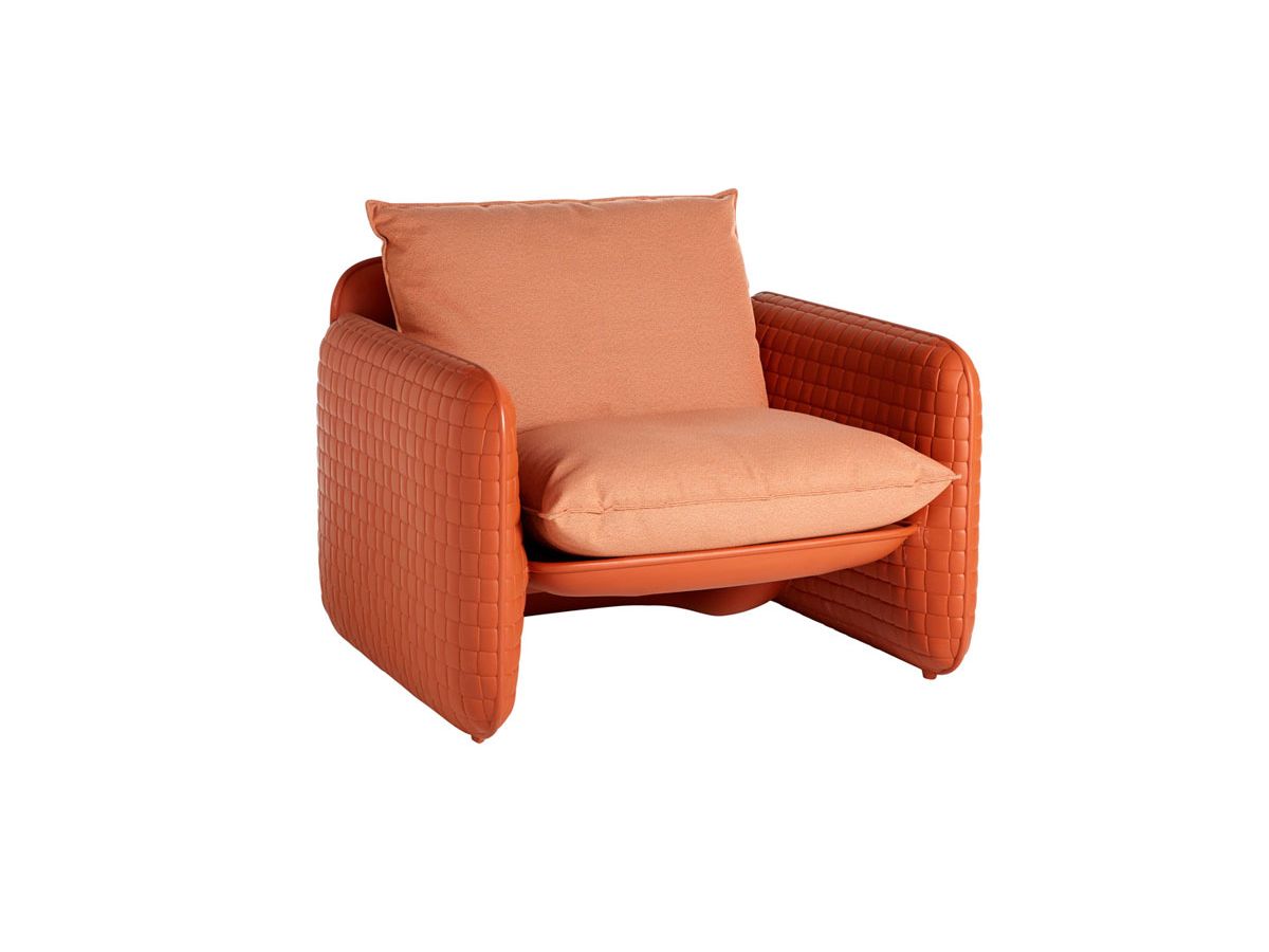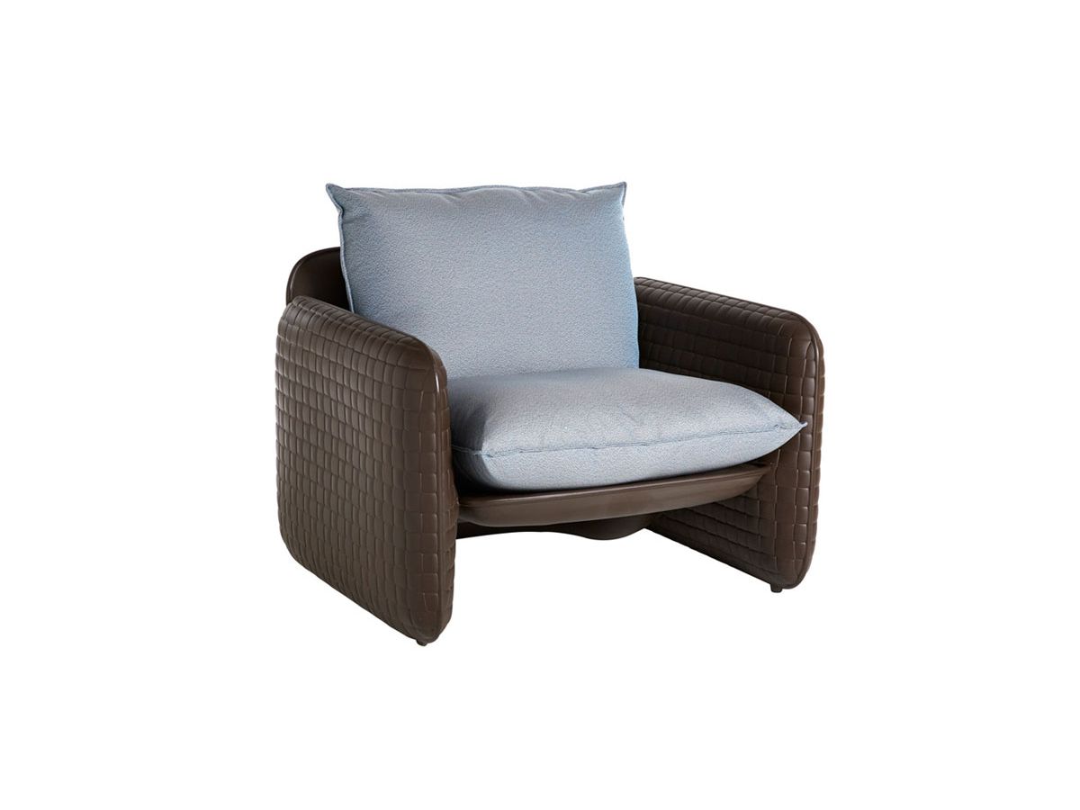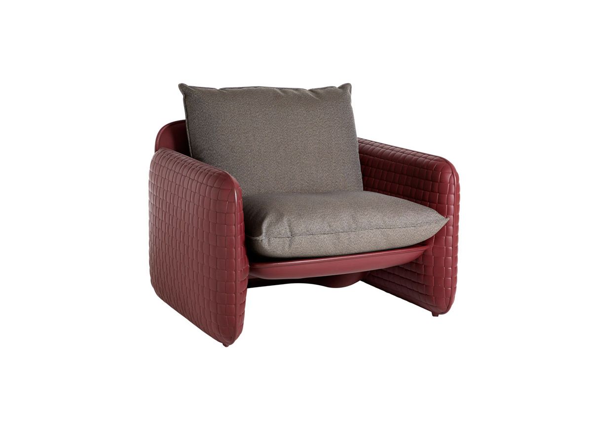 El entretejido del cuero revive en toda la textura de la estructura Mara, un sillón lounge diseñado por Lorenza Bozzoli. La textura única se combina con los cojines de tela impermeable y es adecuada para uso en exteriores. El cómodo asiento hace que Mara sea ideal para proyectos contract en techos, jardines e interiorismo. Mara es una colección compuesta también por el sofá de dos plazas Mara y un puf Mara Pouf.Dimensiones 106 x 94 h 82 cm - asiento H 52