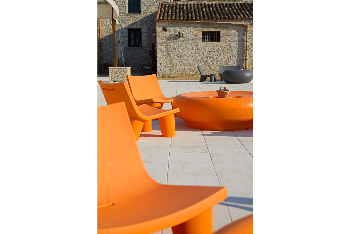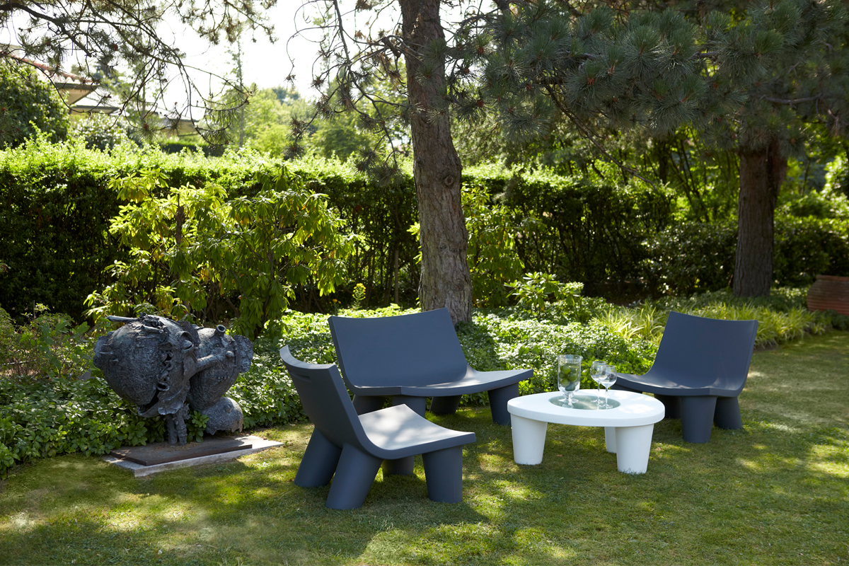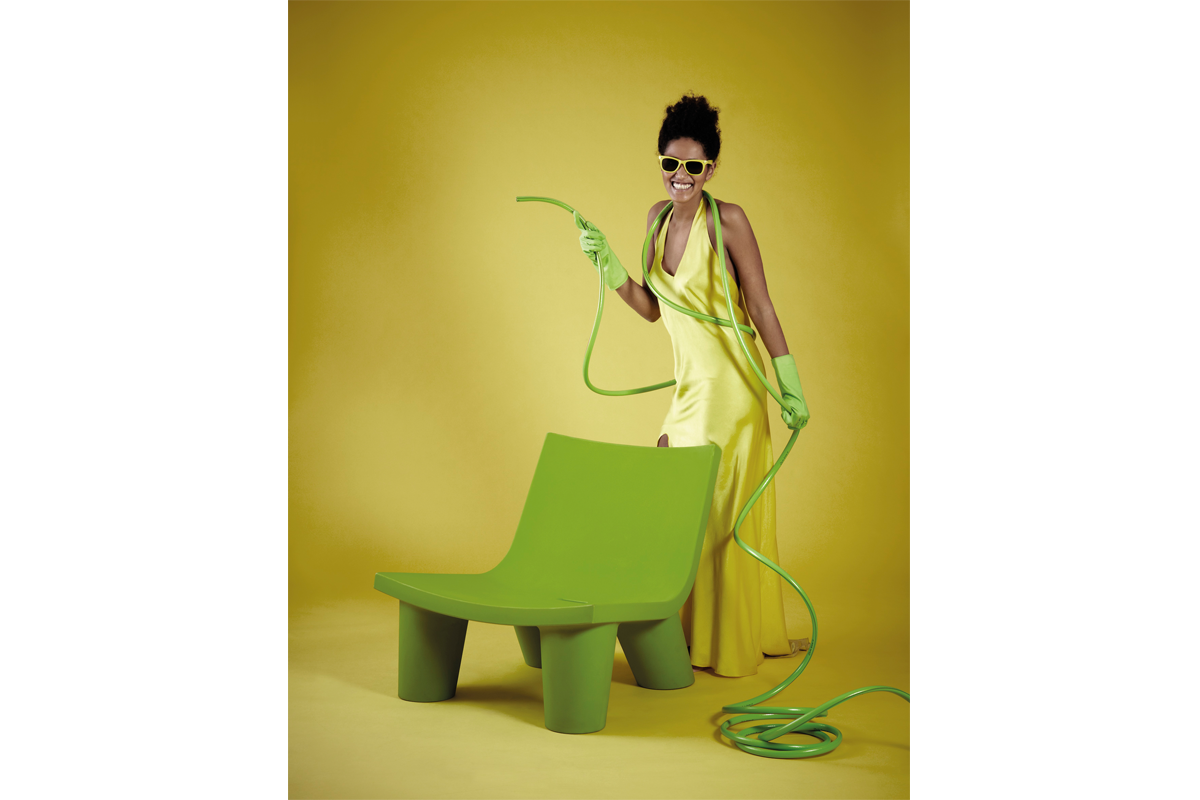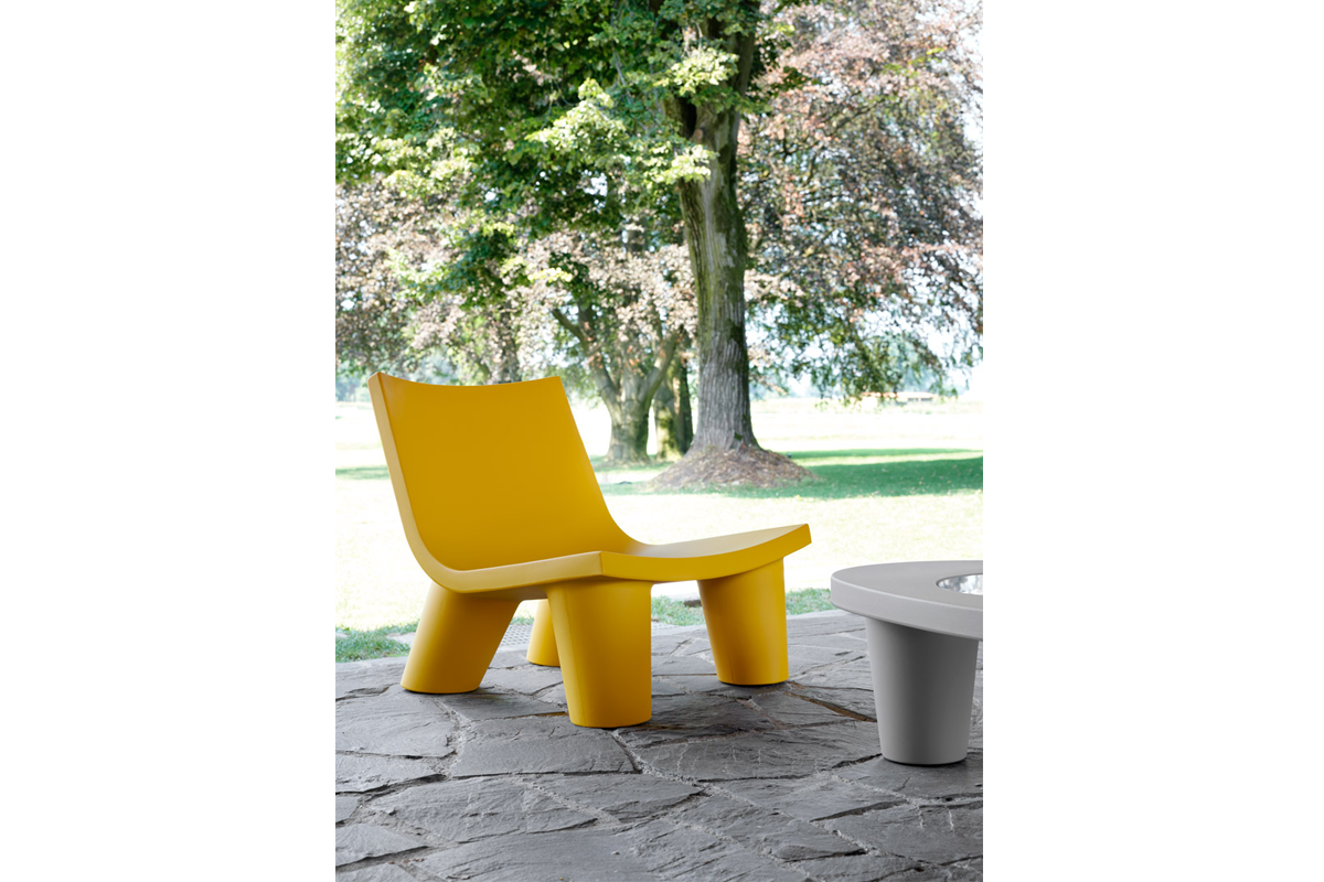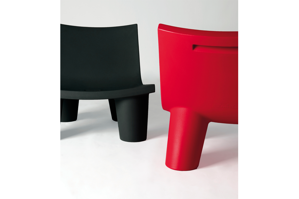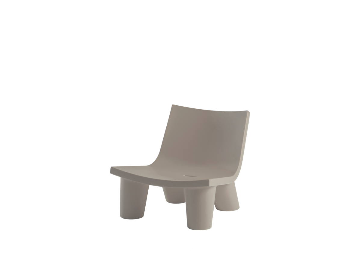 El diseño, esbelto y limpio para el respaldo y el asiento, contrasta con las cuatro importantes patas que lo sostienen y le dan solidez formal y funcional. El perfil ligeramente curvado de la base, que desarrolla la zona de apoyo hacia el exterior, hace que Low Lita sea especialmente acogedora y confortable.