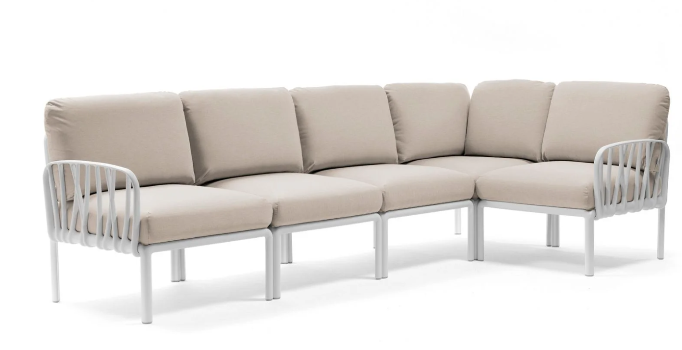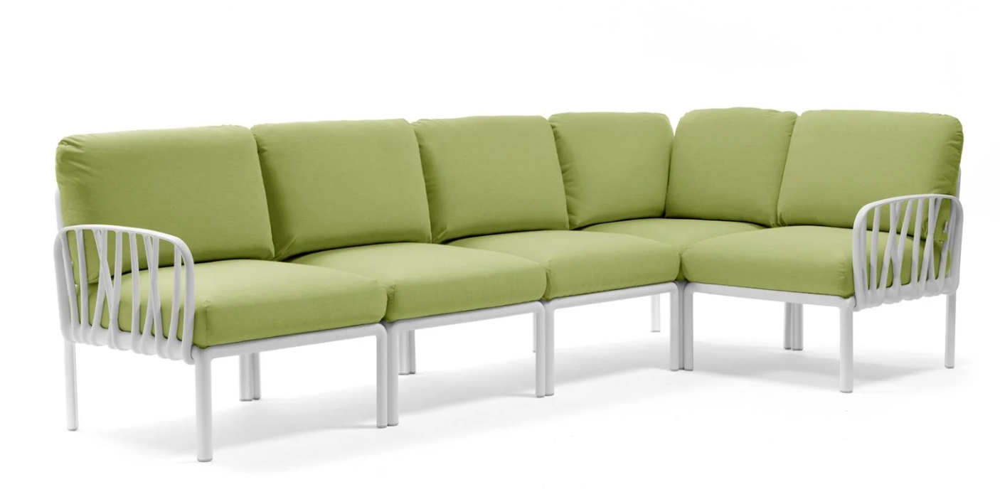 Inspirado en las ramas de los árboles, Komodo 5 es un sistema modular de asientos para exterior, con estructura y tapizado de resina de fibra de vidrio, con una extraordinaria flexibilidad compositiva y diseñable a voluntad según el espacio, los gustos y las necesidades.