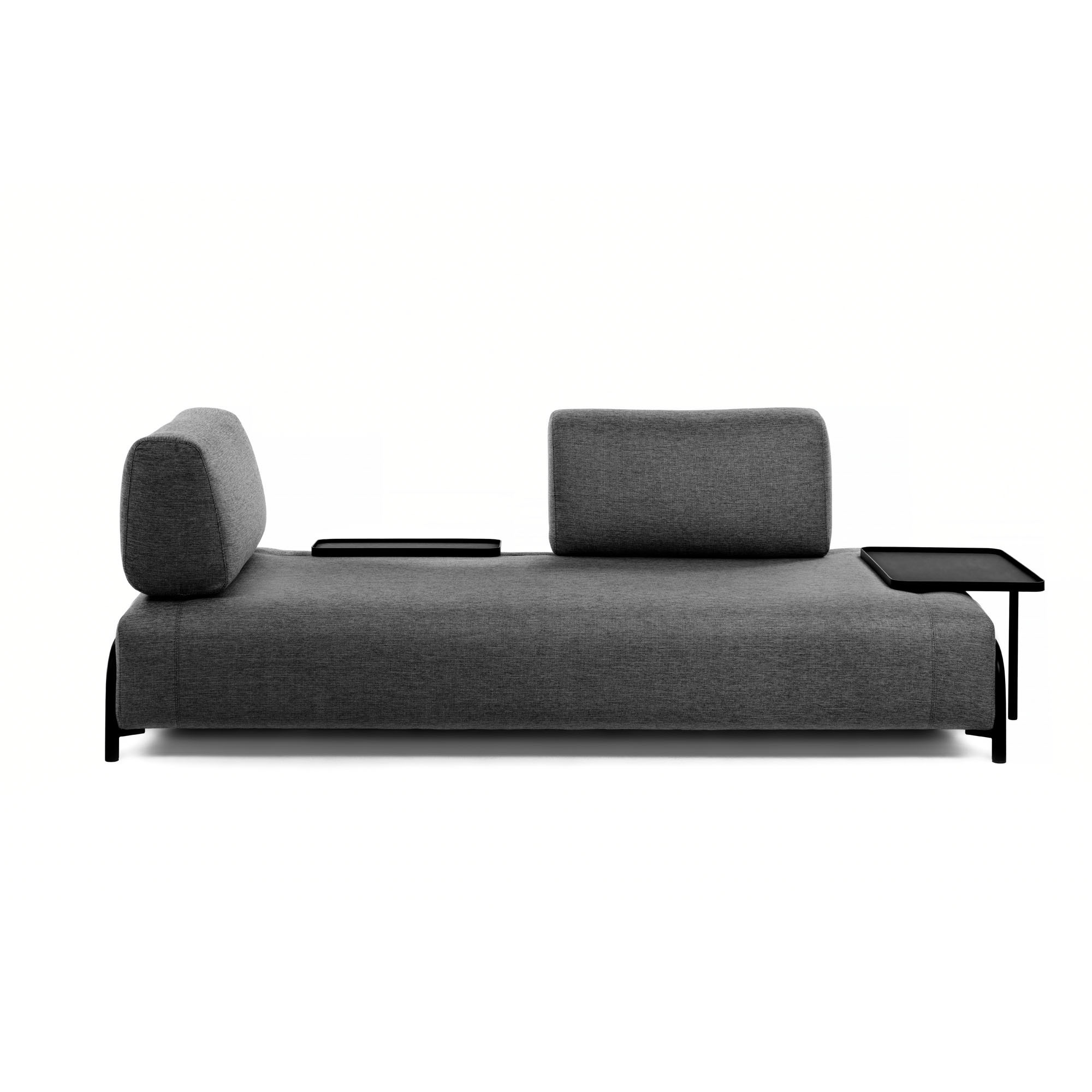 El sofá Compo está diseñado por Òscar Doll, uno de los diseñadores del equipo de Kave Home. Es un artículo atemporal, por su forma esencial y básica, con el que disfrutar de todas las combinaciones posibles, gracias a sus complementos. El marco de pino está cubierto con espuma. Tapizado en gris oscuro, este sofá tiene una pequeña bandeja. Un sofá polivalente que mantiene su protagonismo en todas sus múltiples formas. Solo relajate y disfrutalo.