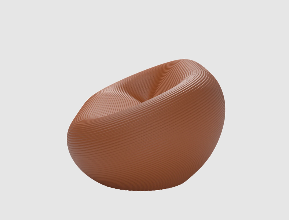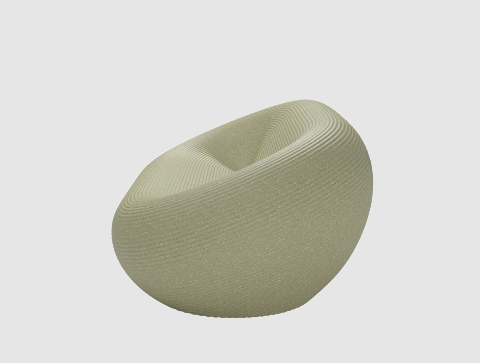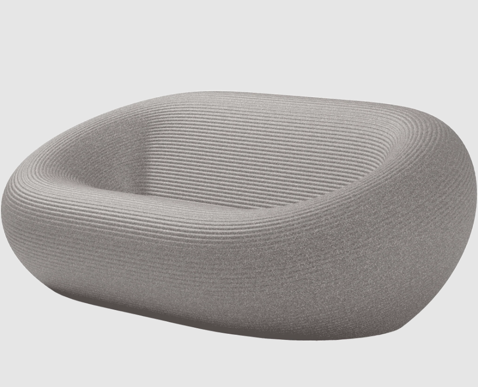Nami es un sofá de exterior que alterna líneas rectas y curvas: un asiento lineal en el centro se abre en volúmenes circulares en los extremos.