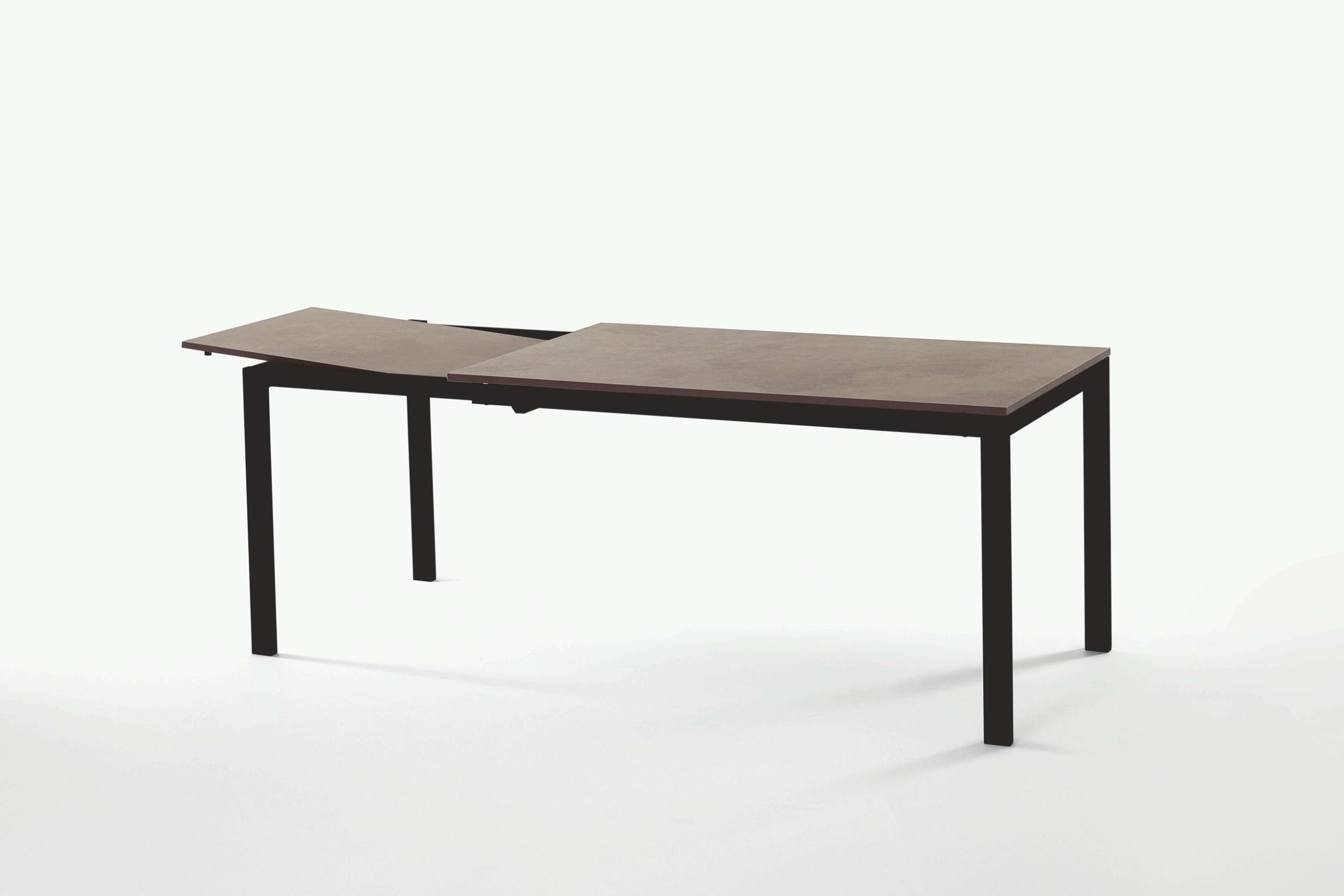 Mesa extensible con estructura en acero lacado de aluminio M089, blanco M306, arena M312, barro M313, marrón oscuro M307, antracita M310 o negro M055, la tapa está disponible en: - cristal blanco brillante serigrafiado C106 - cristal lacado gris paloma brillante C193 - cristal lacado negro brillante C152 - cristal lacado marrón oscuro brillante C192 - cristal lacado antracita brillante C196. Dimensiones: ancho: 100 (cerrado) - 140 (abierto) cm Profundidad: 70 cm Altura: 75 cm Especifique el color por correo electrónico a info@tecnoarredo3.com Aumento de la estructura cromada G093 para información contacte info@tecnoarredo3.com