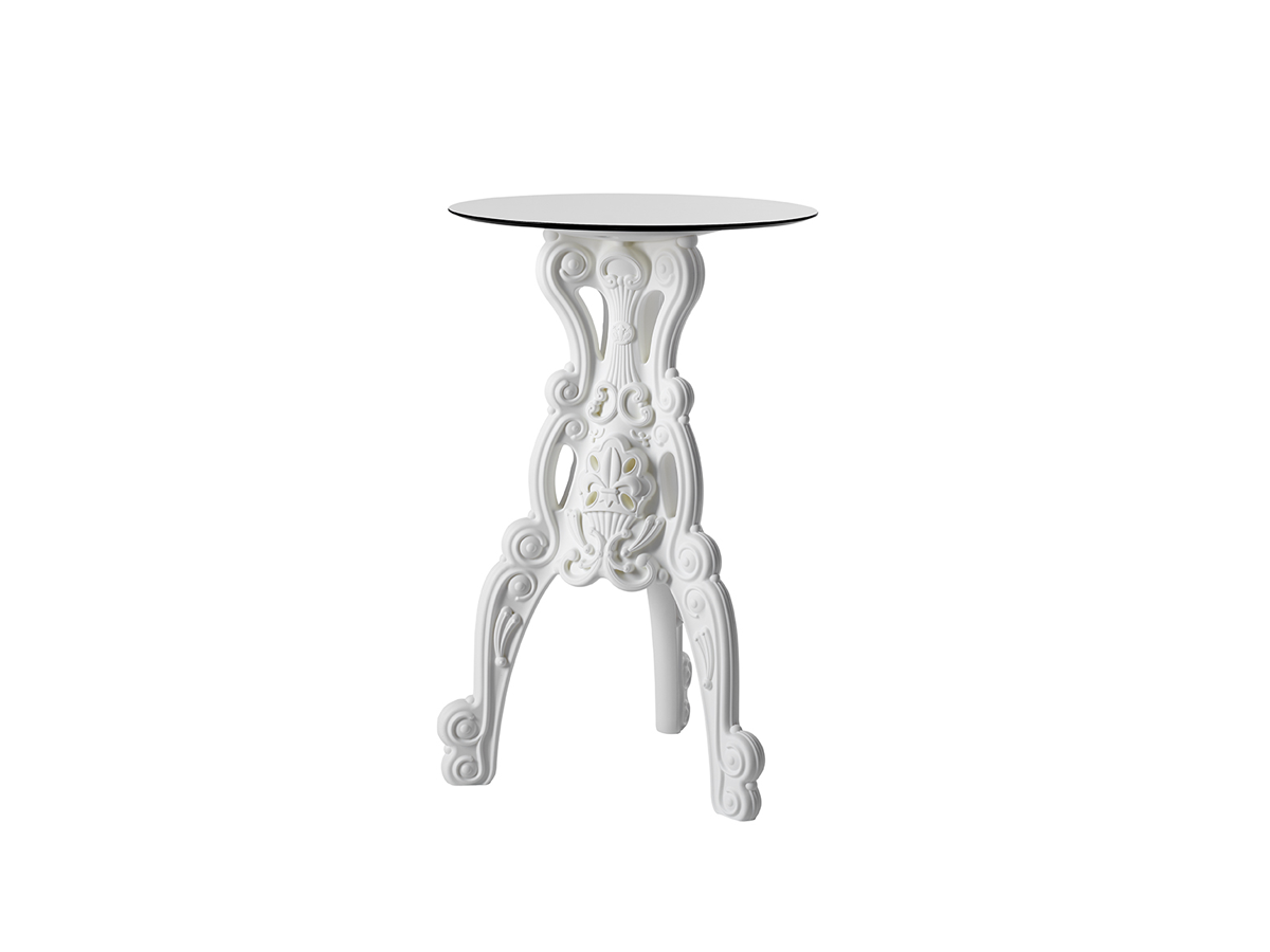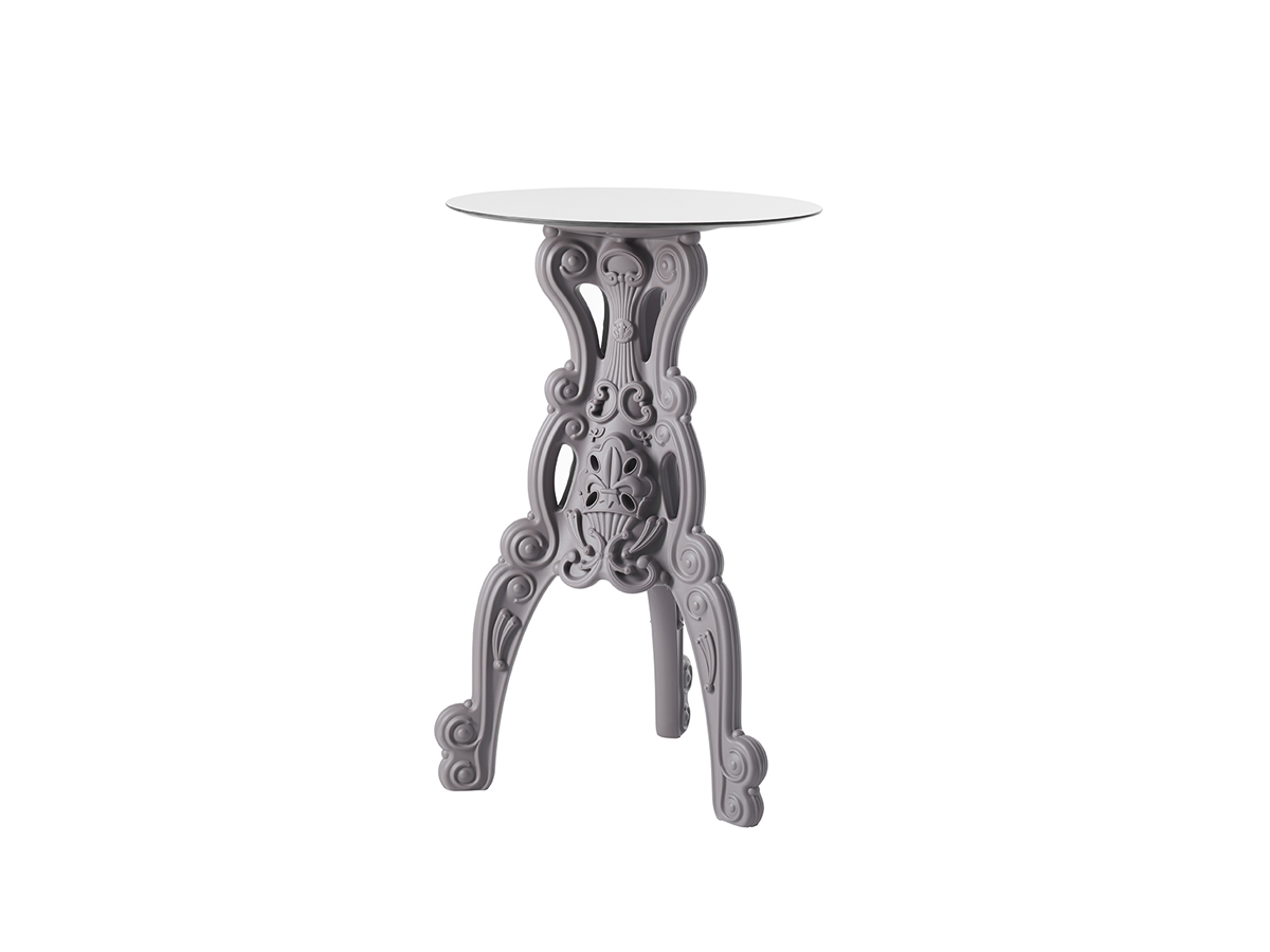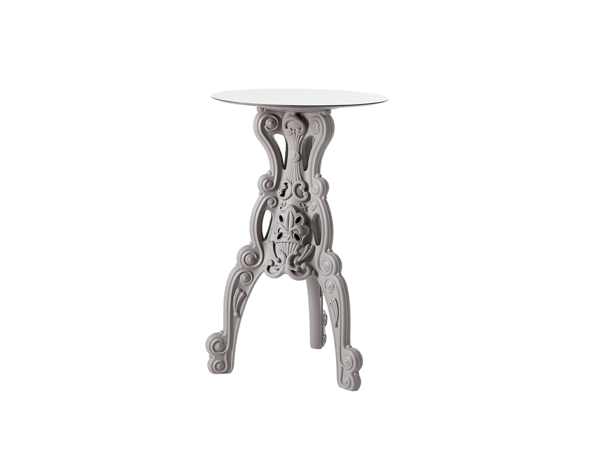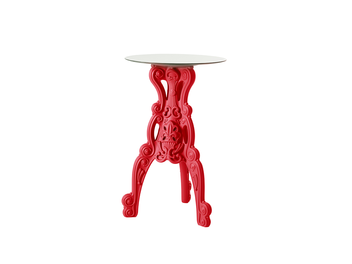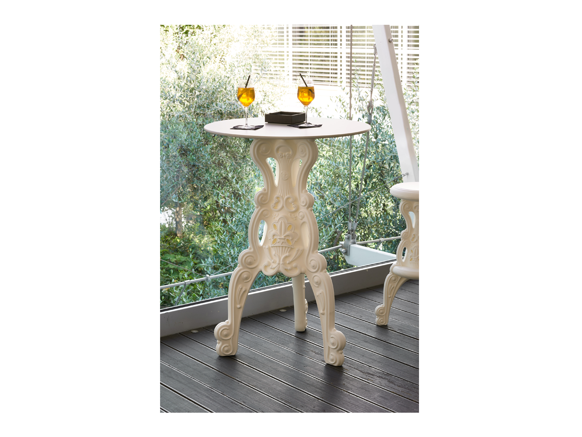 La mesa alta MASTER OF LOVE forma parte de la línea Design Of Love Collection y recuerda el mismo espíritu irónico y lujoso. Con sus patas arqueadas, características de las mesas de estilo barroco, pero con la contemporaneidad de sus materiales, el producto se puede utilizar tanto en interiores como en exteriores y no puede pasar desapercibido.