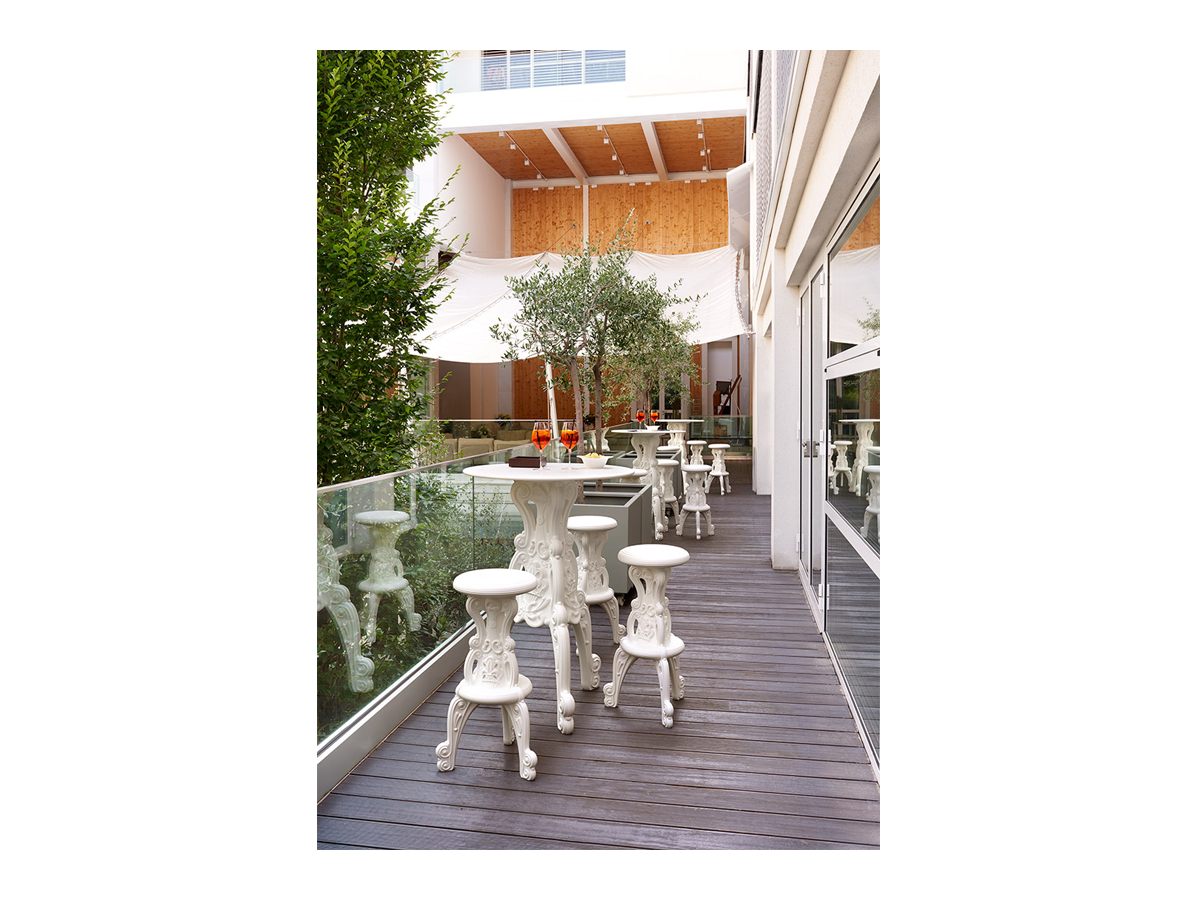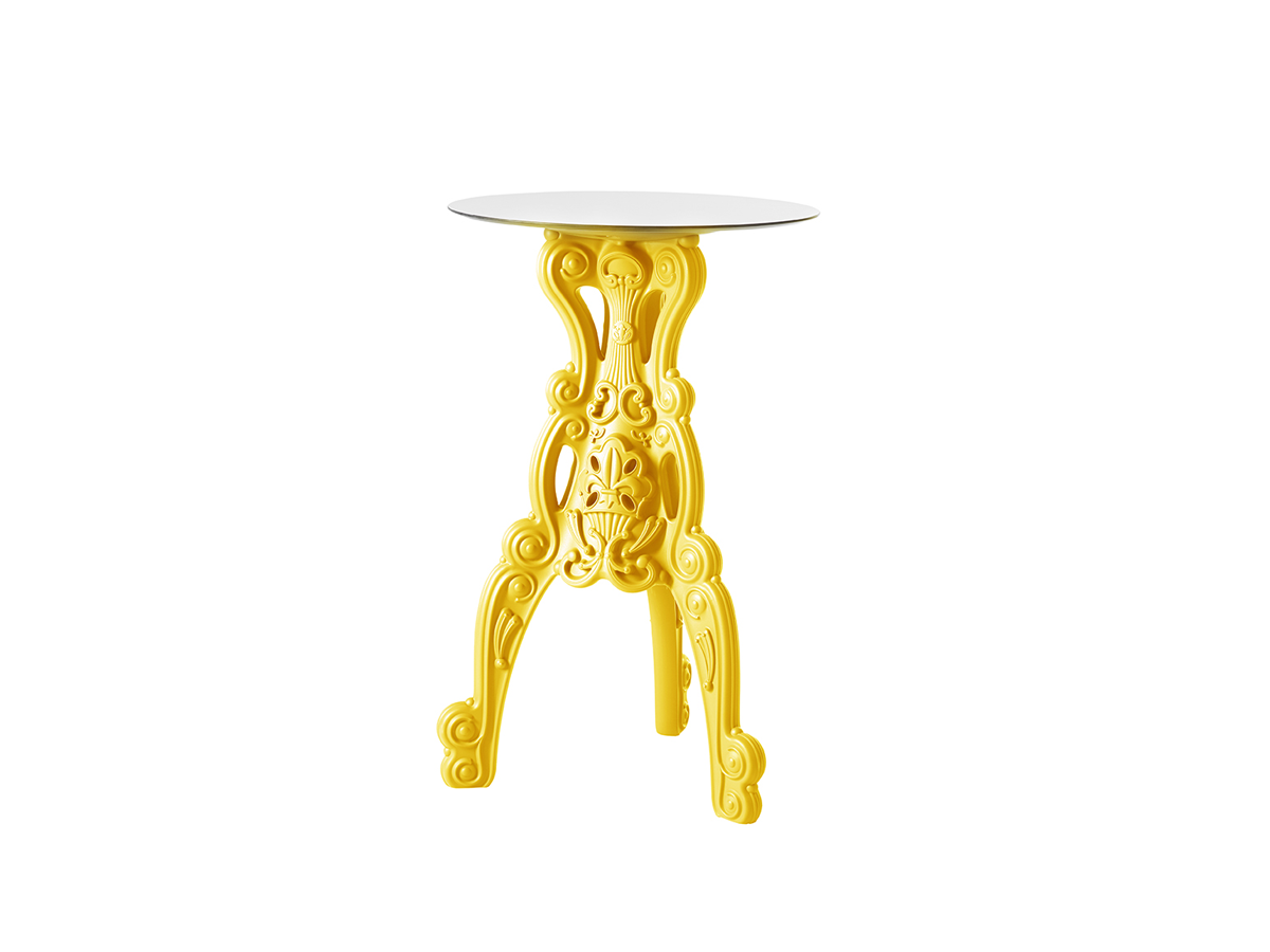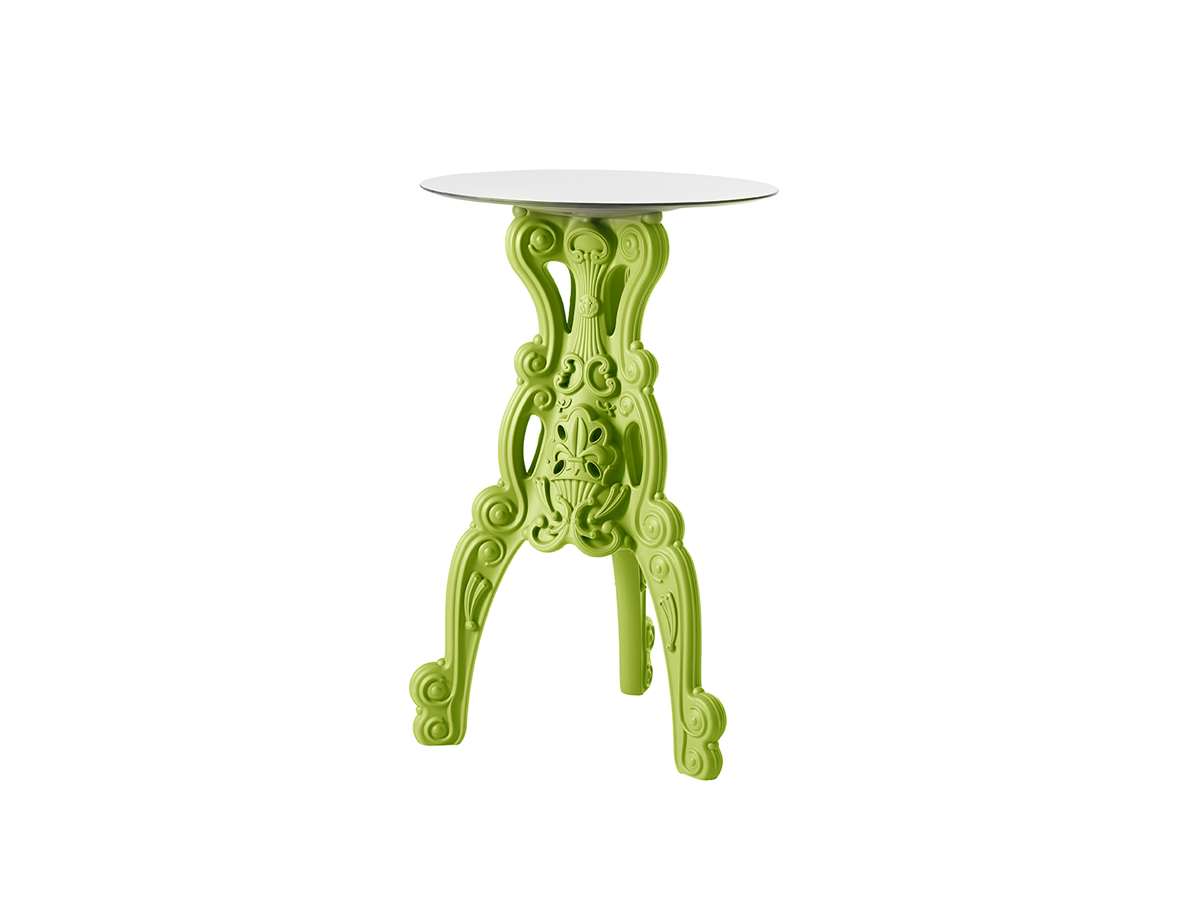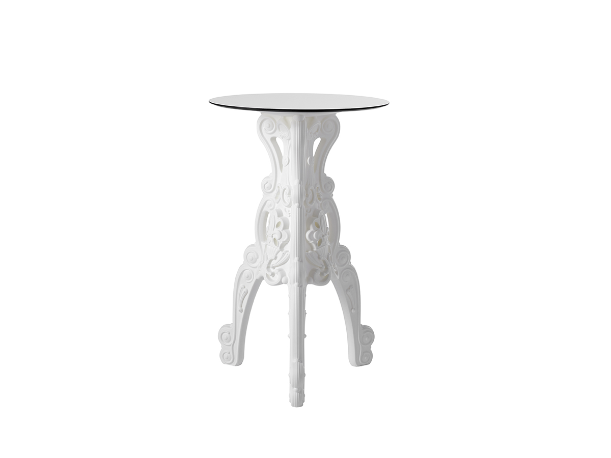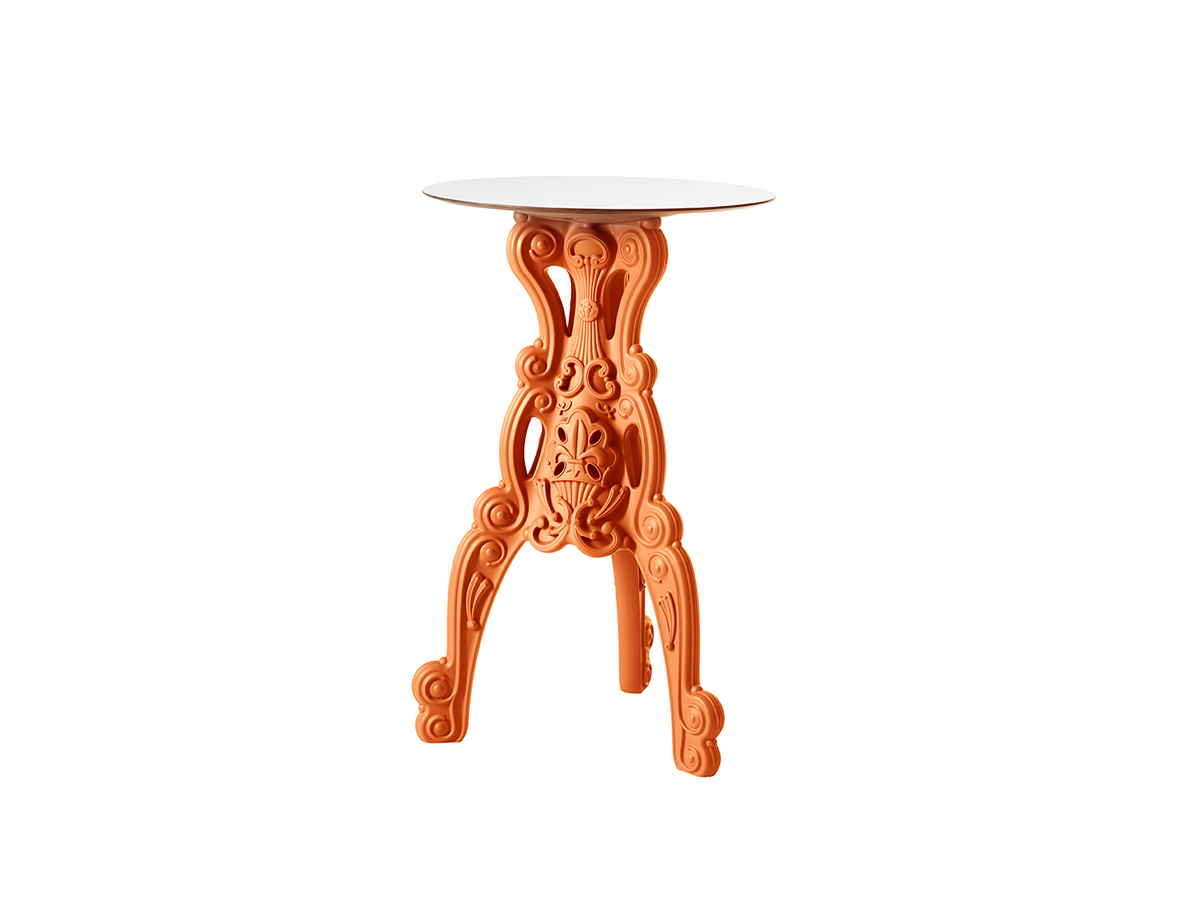 La mesa alta MASTER OF LOVE forma parte de la línea Design Of Love Collection y recuerda el mismo espíritu irónico y lujoso. Con sus patas arqueadas, características de las mesas de estilo barroco, pero con la contemporaneidad de sus materiales, el producto se puede utilizar tanto en interiores como en exteriores y no puede pasar desapercibido.