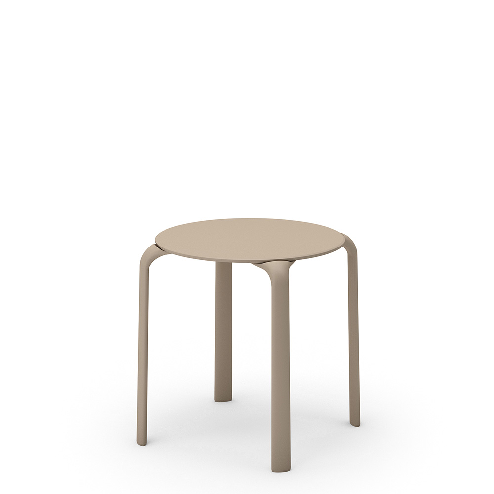 Ligera, práctica y muy apilable, la mesa Drop ha sido diseñada para uso en exteriores.