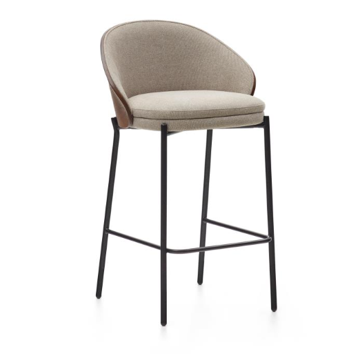 • Taburete con respaldo en chapa de fresno acabado nogal.