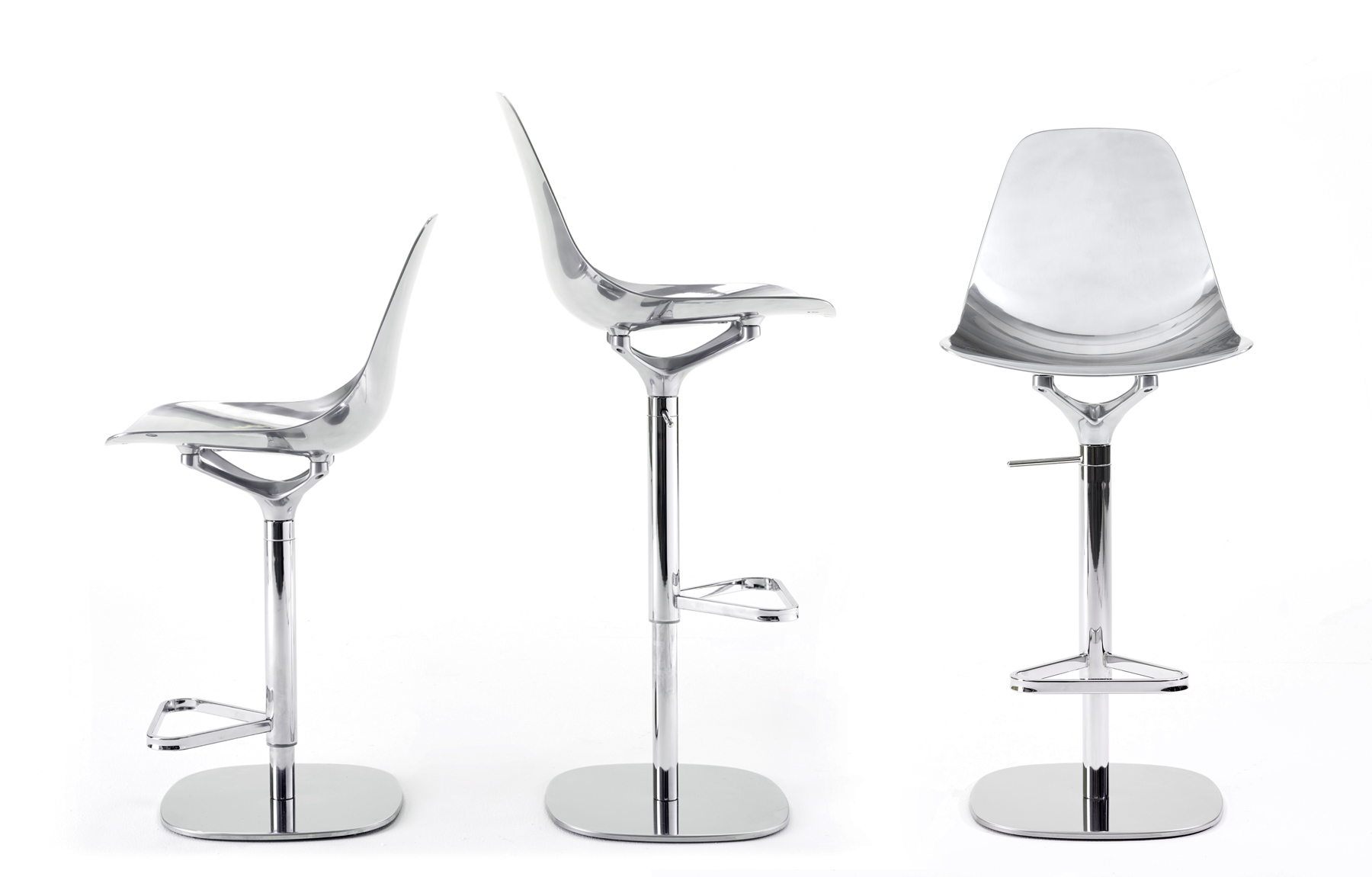 Taburete giratorio y regulable en altura con cuerpo de aluminio fundido a presión, con estructura