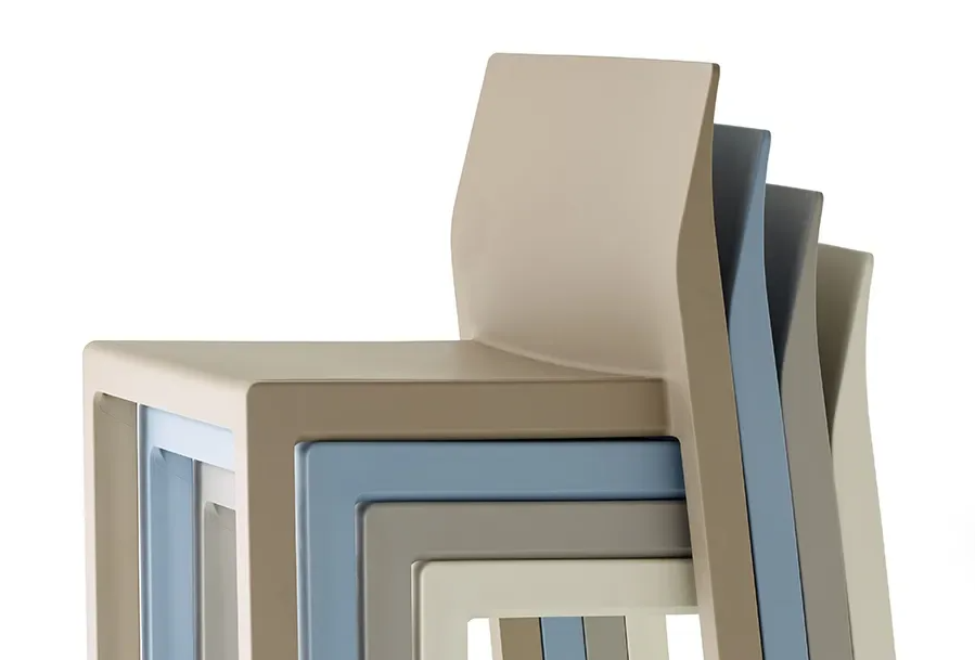 Ligero y apilable, es la opción ideal para entornos contract dinámicos, tanto en interiores como en exteriores.