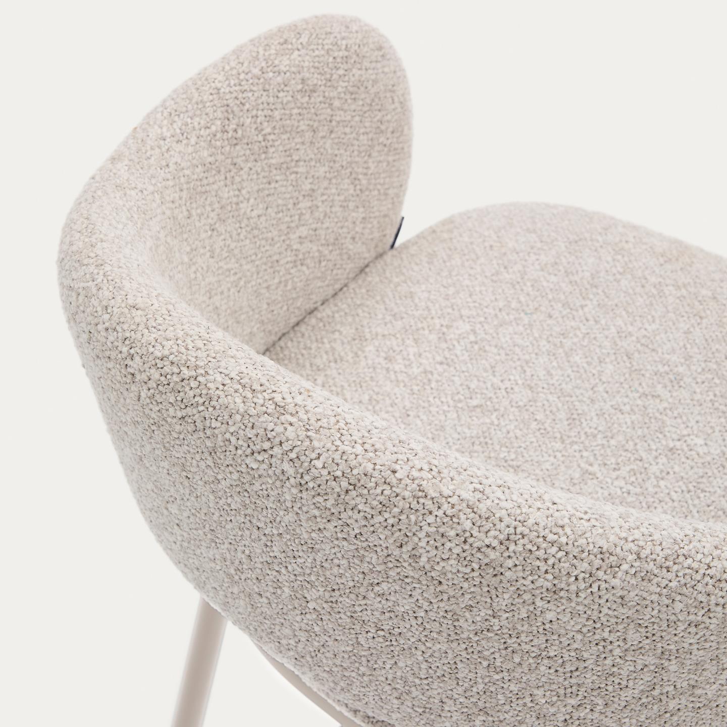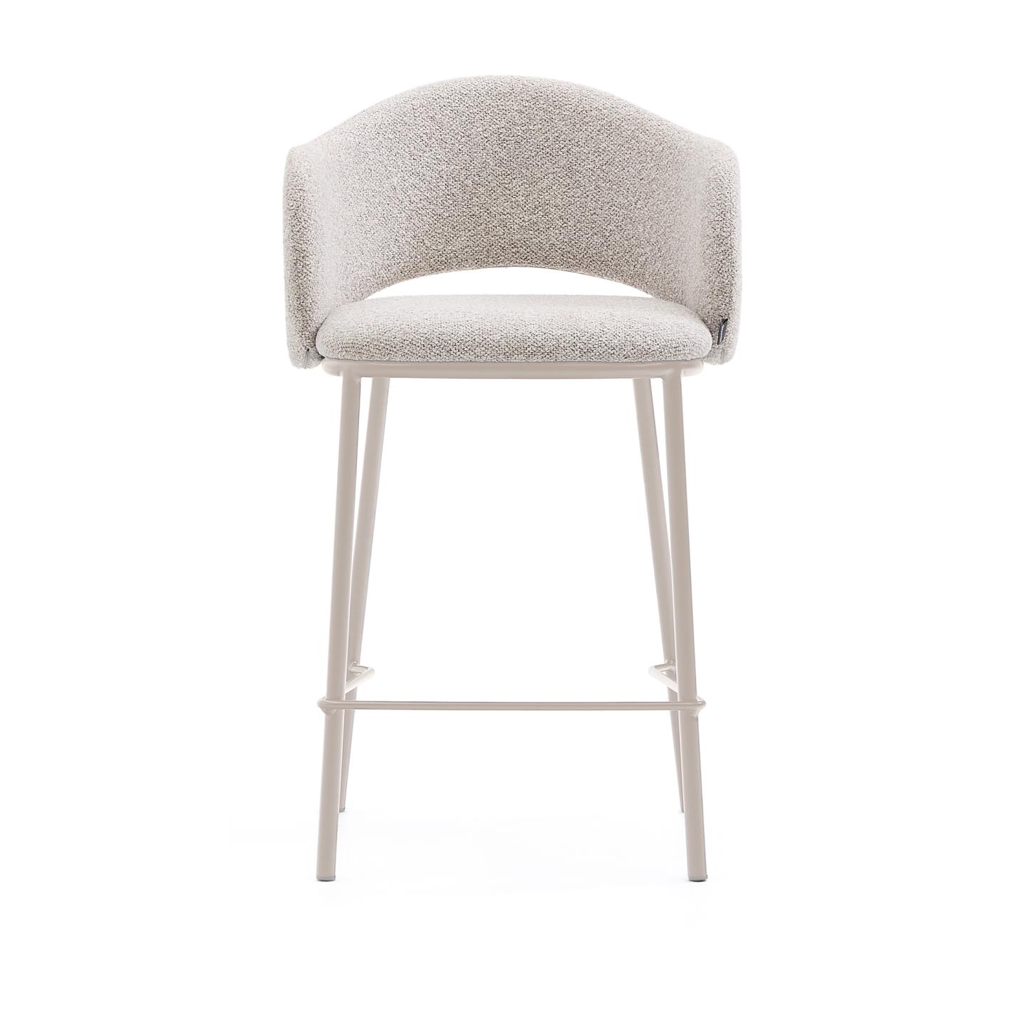 Taburete Maina en chenilla beige y patas de acero acabado beige FSC Mix Crédito 65 cm