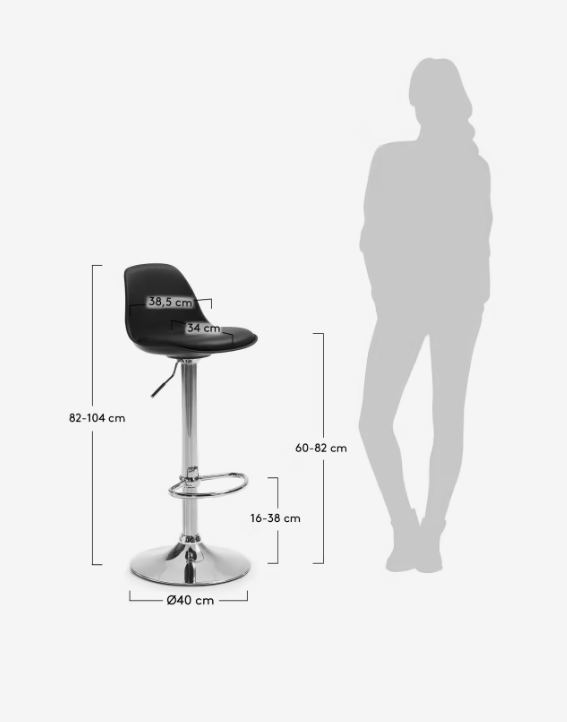 • 100% ajustable: el taburete cuenta con altura ajustable y asiento giratorio.